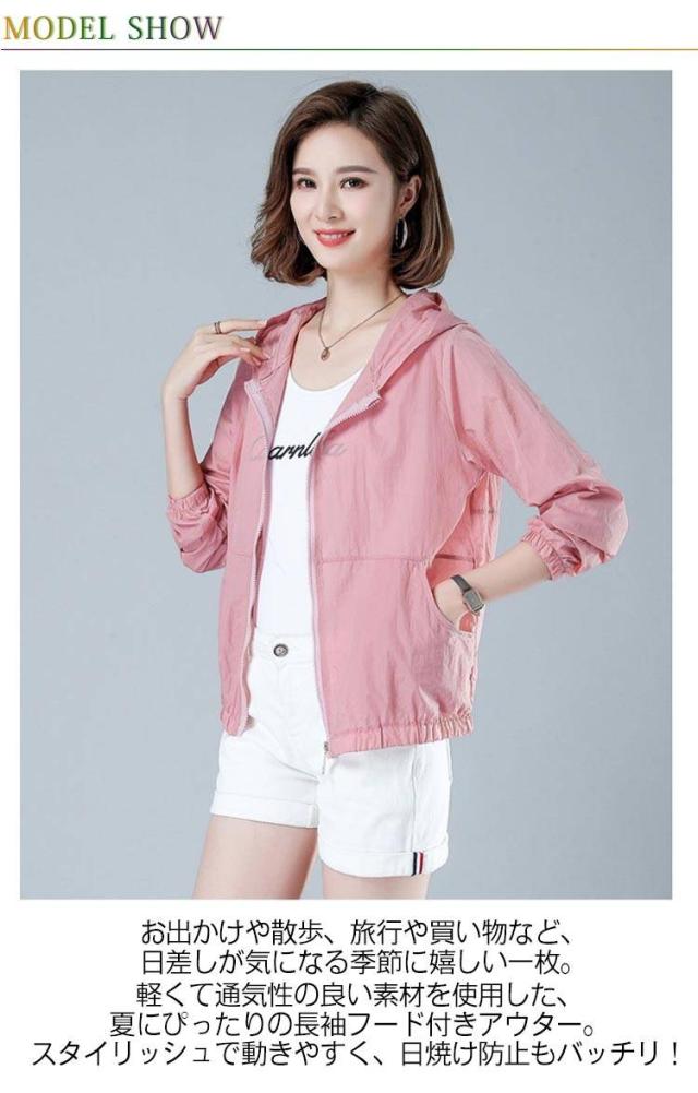長袖パーカー UVカット 夏用ジャケット ブルゾン レディース 日焼け対策 フード付き 上着