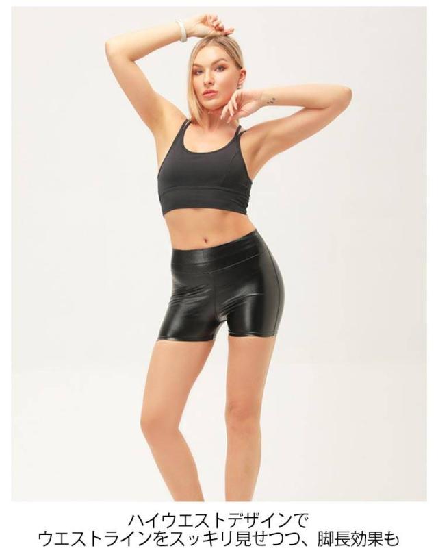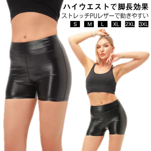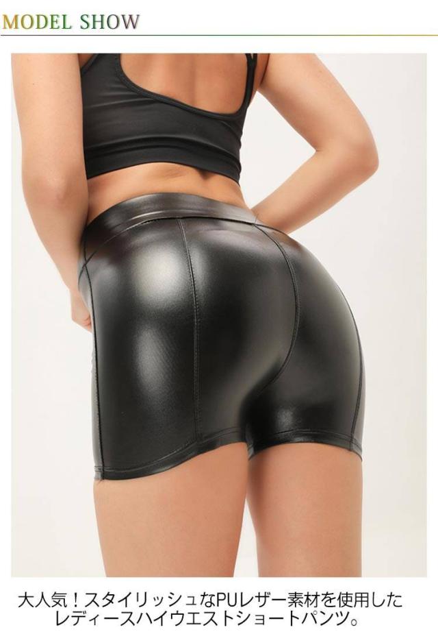 レディース PUレザー タイト ハイウエスト ホットパンツ ショートパンツ 短パン フェイクレザーパンツ
