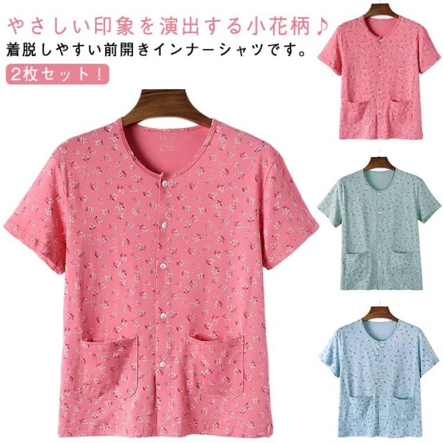 インナーシャツ 入院 コットン 2枚セット インナーシャツ 綿 tシャツ 下着 前開きシャツ 婦人 レディース インナー 婦人 介護 肌着 女性 ルームウェア 病院 施設 手術 ゆったり 大きいサイズ 介護用