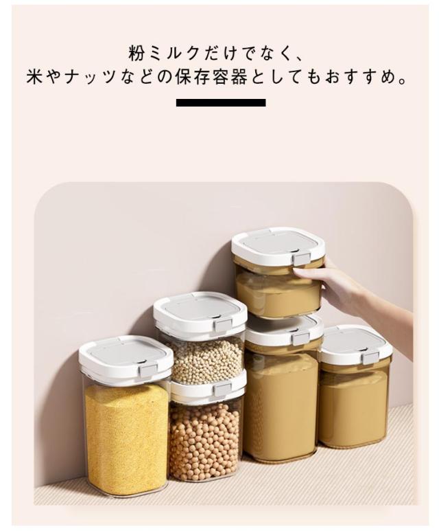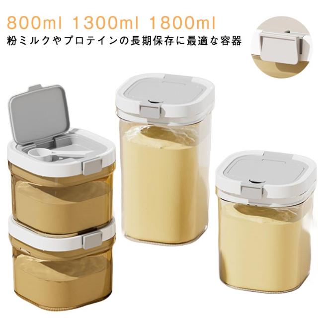 | 800ml 1300ml 1800ml 粉ミルクやプロテインの長期保存に最適な容器 フタについているボタンを押すだけで密閉可能!片手でワンタッチなので、 料理中の手がふさがっている状況でも使いやすいのがうれしいポイント。 クリアだけでなく、茶色のデザインは遮光効果があり粉ミルクの鮮度を保てます♪ フタ部分はスプーン収納所があり、サイズ違いスプーンにも対応できます。 コンパクトなサイズ、外遊びや旅行に大変便利なアイテムです。 粉ミルクだけでなく、米やナッツなどの保存容器としてもおすすめ。 | |