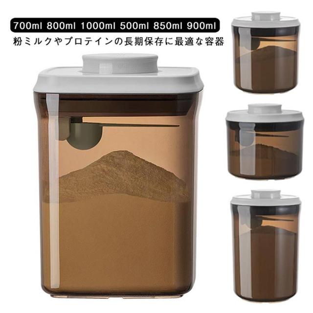| 700ml 800ml 1000ml 500ml 850ml 900ml 粉ミルクやプロテインの長期保存に最適な容器 フタについているボタンを押すだけで密閉可能!片手でワンタッチなので、 料理中の手がふさがっている状況でも使いやすいのがうれしいポイント。 クリアだけでなく、茶色のデザインは遮光効果があり粉ミルクの鮮度を保てます♪ フタ部分はスプーン収納所があり、サイズ違いスプーンにも対応できます。 コンパクトなサイズ、外遊びや旅行に大変便利なアイテムです。 粉ミルクだけでなく、米やナッツなどの保存容器としてもおすすめ。 | |