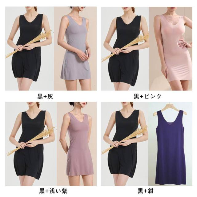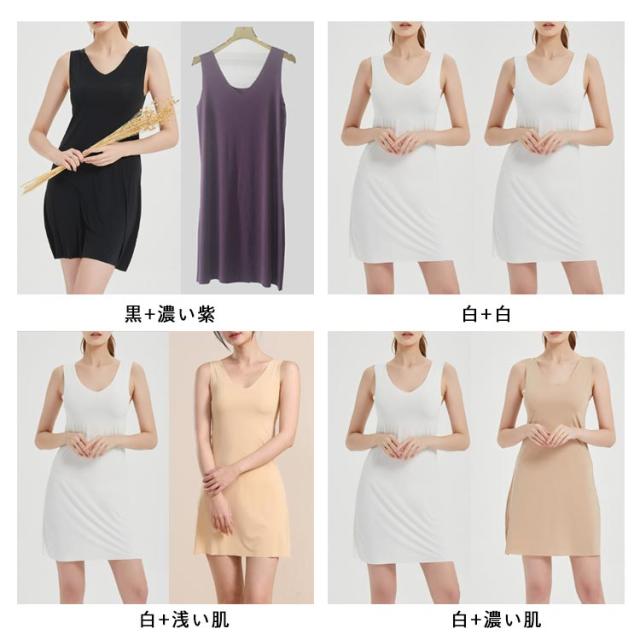 ひびきにくい ひんやり 高級 タンクワンピース 涼しい 2枚セット ロング クール スリップ レディース タンクトップ 透け防止ペチコート ワンピース インナー タンクワンピ タンクワンピ 大きいサイズ ストレッチ
