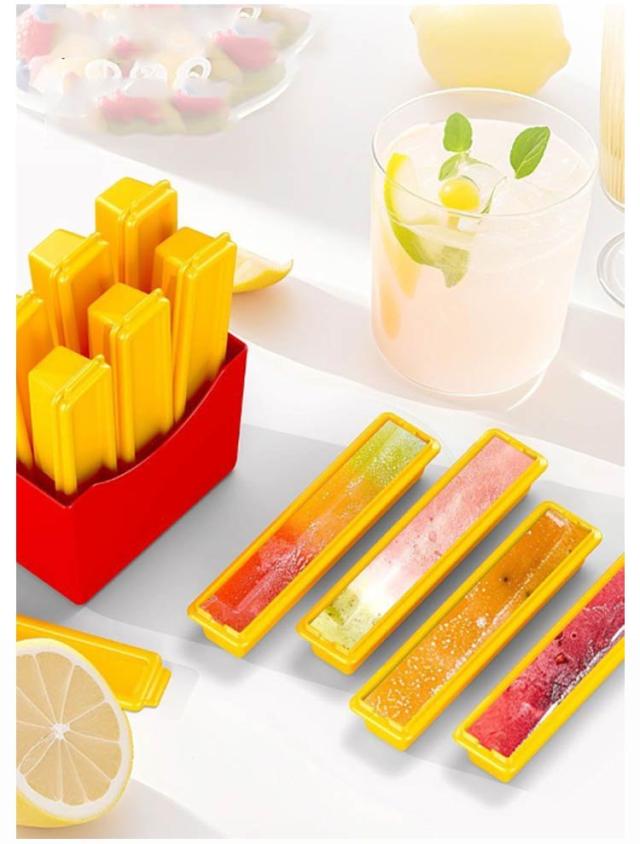 | ペットボトル・水筒などにいれる細長い氷作れる 冷蔵庫に貼れる収納ケース付き!フライドポテト型製氷皿。 冷蔵庫に貼れる!マグネット式収納で場所を取らない かわいい飾りにもなれる! 細長い氷!コップ・ペットボトル・水筒などに簡単 に入り、手軽に冷たい水を実現! スリム氷トレー。隙間を利用して収納し、場所を取らない! 押すだけ・ひねるだけ簡単取り出し! 通勤・通学、スポーツやレジャー、屋外イベントなど様々な場面で水筒・マイボトルに入れてお出かけ。 | |