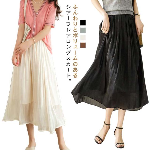 ロング丈 レディース スカート ギャザースカート ウエストゴム マキシ フレアスカート 春 スカート スカート ロングスカート レディース ロング丈 シアーフレア ハイウエスト シアー素材 総ゴム 薄手 着痩せ