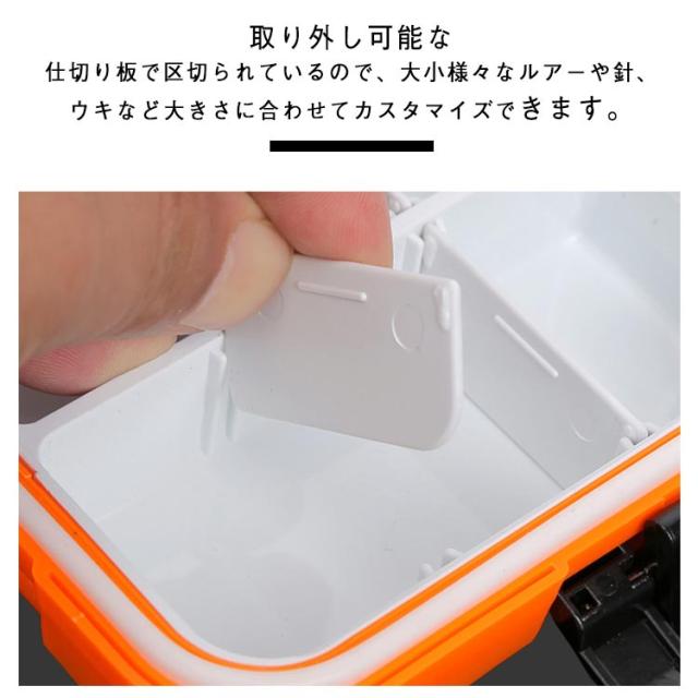 | S M L 収納力抜群の釣り道具ケースです。 蓋付きで仕切りがあり、ルアー、フック等の釣り道具をすっきり分けて収納できます。 小さな釣り具アクセサリーの収納にとっても便利♪ 厚みがあり耐久性に優れていますので、長くご使用頂けるタックルボックスです。 取り外し可能な仕切り板で区切られているので、大小様々なルアーや針、ウキなど大きさに合わせてカスタマイズできます。 調度良い大きさがありと軽量なのでどこに行くにも持ち運び便利です。 休日の釣り、アウトドアやキャンプに持っていってもかさばらず気軽に楽しめます。 | |