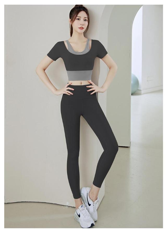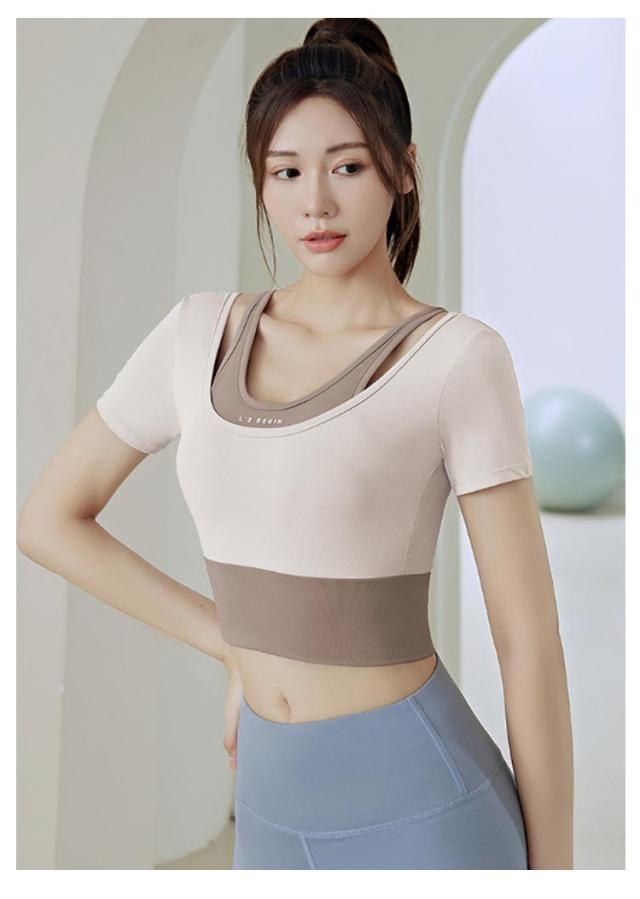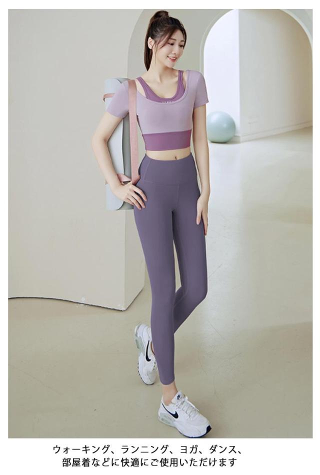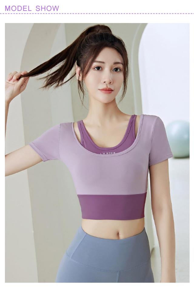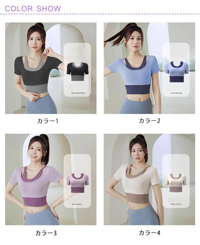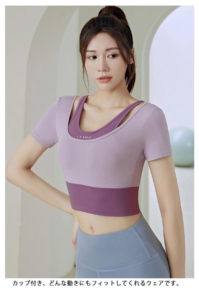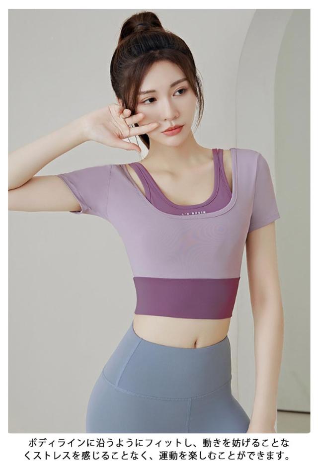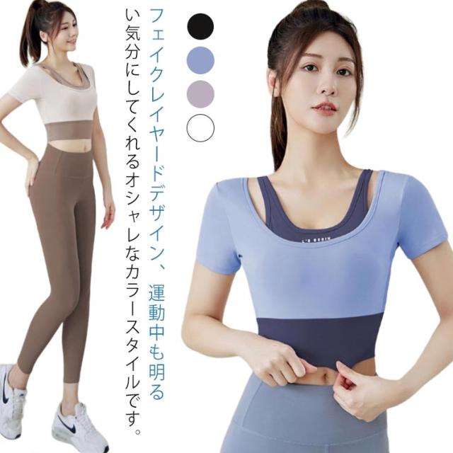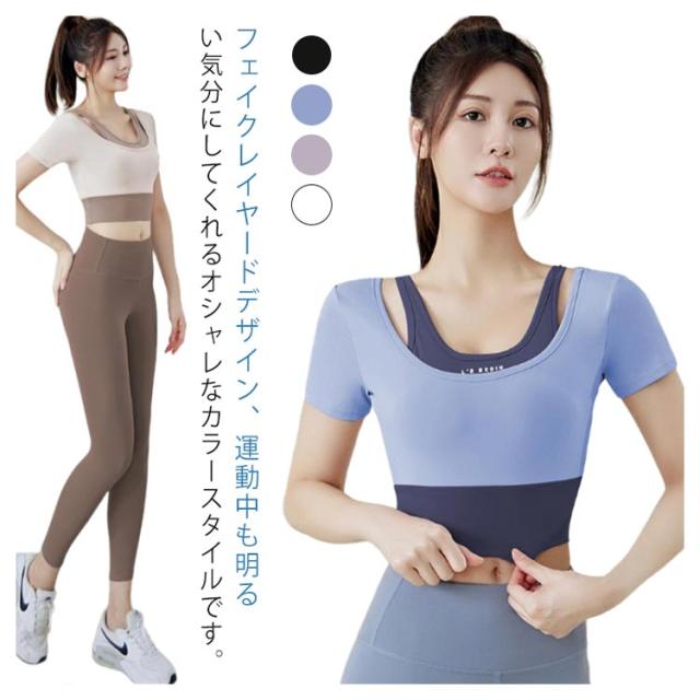 ヨガウェア トップス レディース カップ付き フェイクレイヤード トレーニングウェア 韓国 女性向け 初心者 ヨガトップス Tシャツ ヨガウェア フィットネス フィットネスウェア おしゃれ ジム スポーツ S M L XL