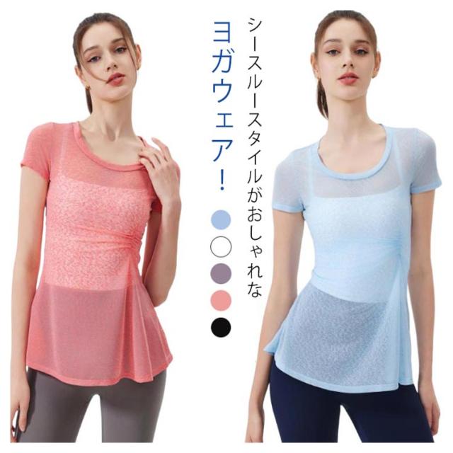 送料無料 M トップス ホットヨガ 半袖 レイヤード ヨガウェア レイヤードトップス おしゃれ ピラティス ランニング スポーツウェア 体型カバー ロング かわいい スリム S 送料無料 L