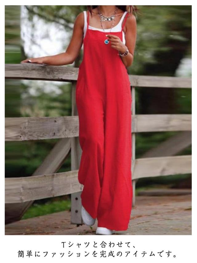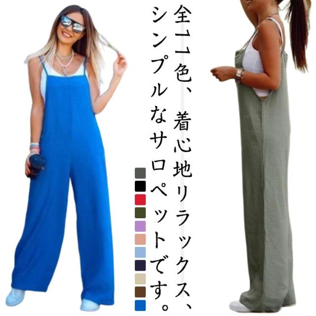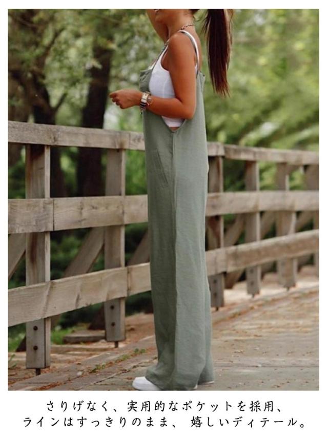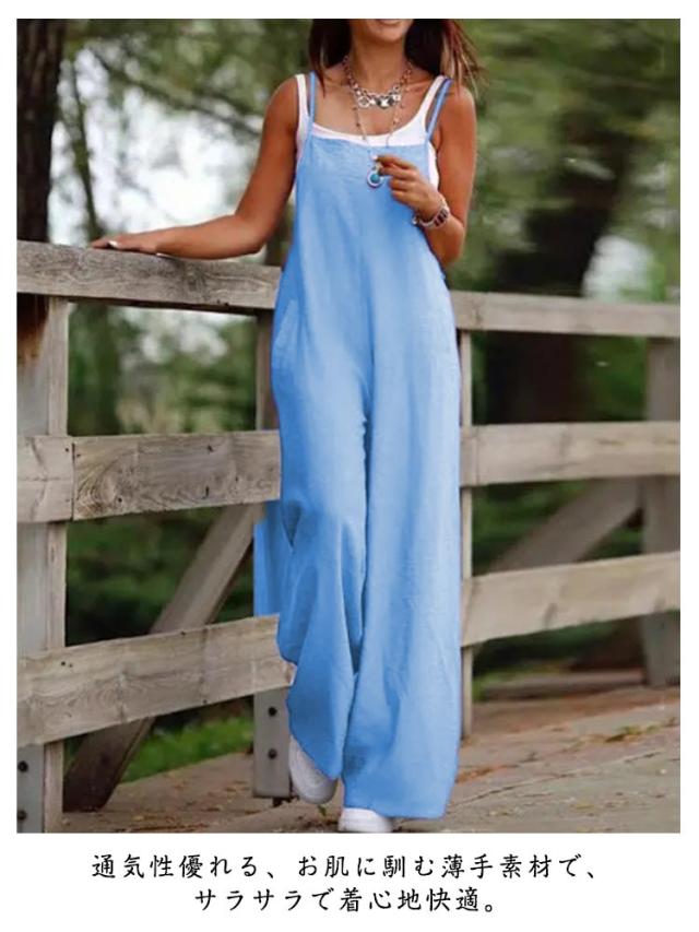 オールインワン レディース 夏 ゆったり パンツ パンツ サロペットパンツ ワイドパンツ 体型カバー サロペット 涼しい ポケット ナチュラル おしゃれ ゆったり 大きいサイズ オーバーオール カジュアル ロングパンツ 普段着 S M L XL 2XL 3XL 4XL