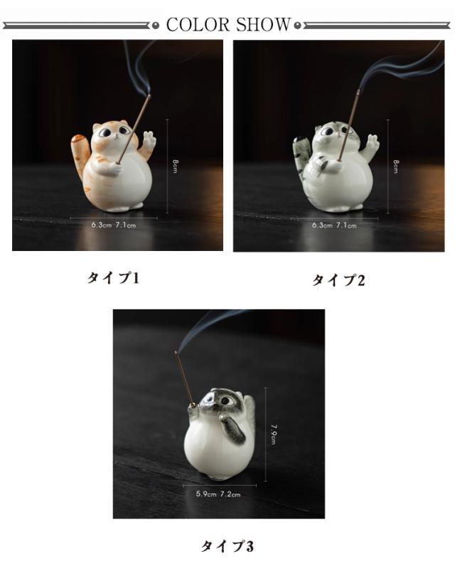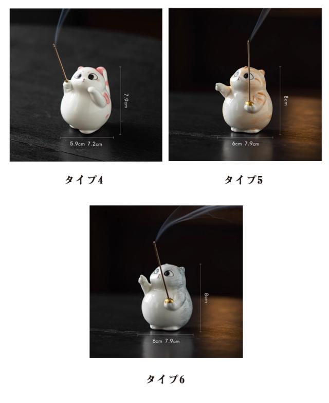 | かわいい猫型の線香立て。【全6タイプ】 灰なしでお線香が立つ、灰いらずの線香立てです。 線香立ての灰は、倒れやすくキケン…燃えカスの処理が面倒…こぼれたり風で飛ぶ…といったトラブルがつきもの。 重厚感のある陶器で線香を支えるので、真っ直ぐ立ち、短くなった線香も倒れにくい! 陶器製の一体構造で水で丸洗いできます。お手入れ簡単で安心の線香立て! | |