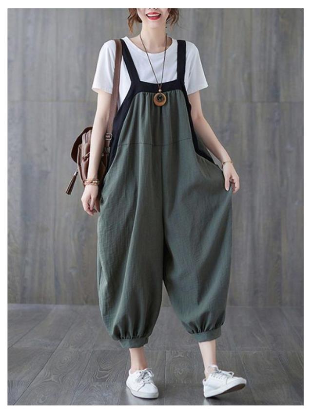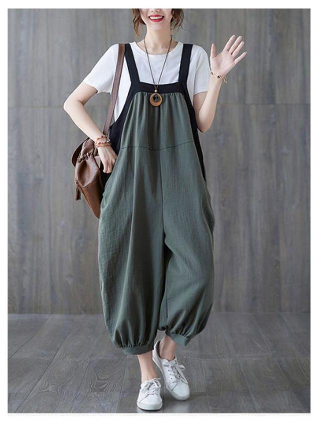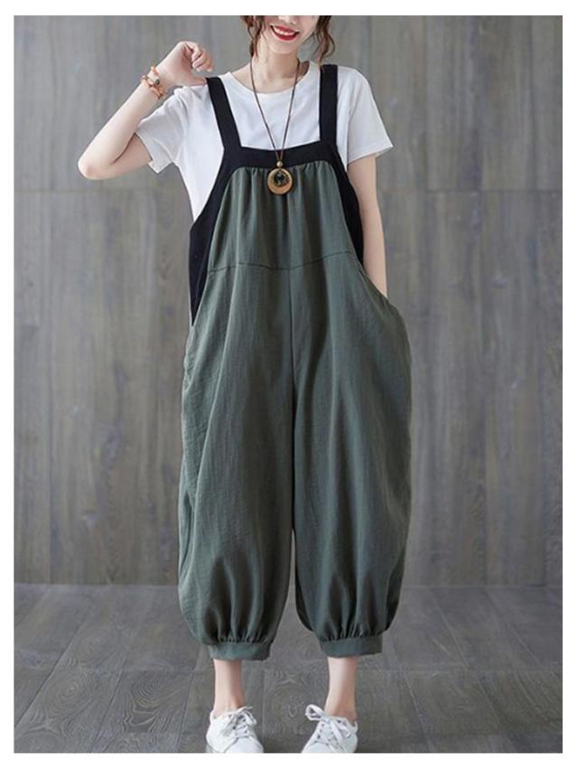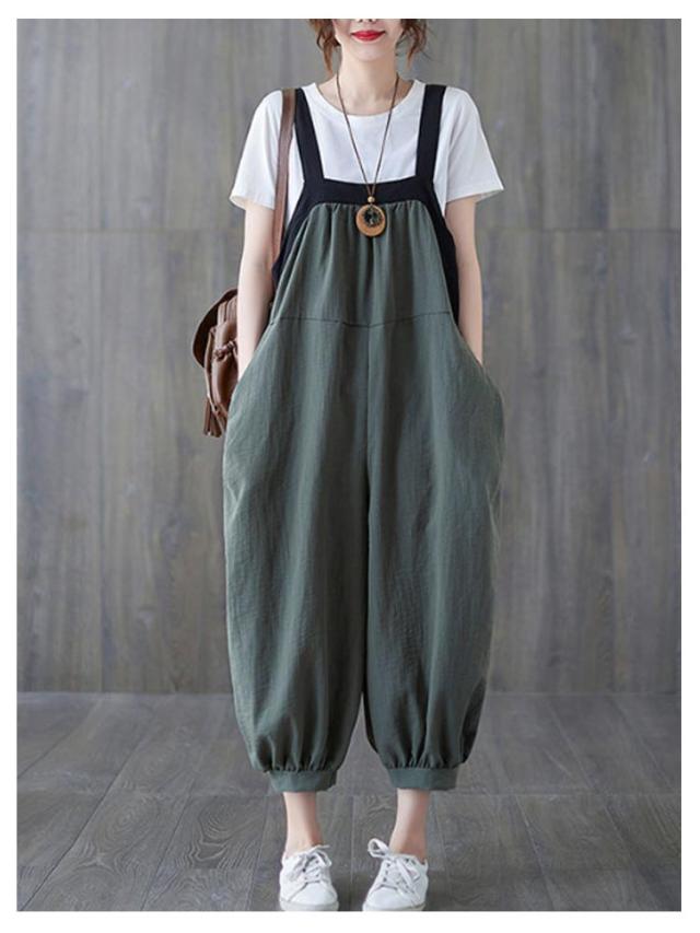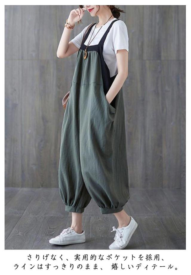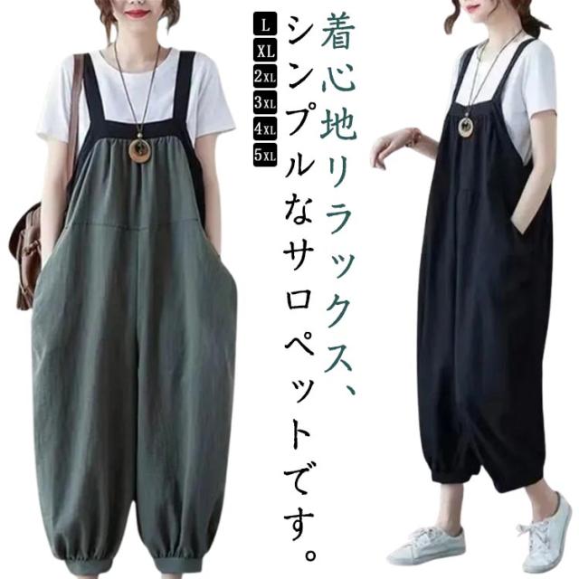 夏 パンツ 大きいサイズ サルエル サロペット ゆったり サルエルパンツ カジュアル ロングパンツ ポケット サロペットパンツ レディース オールインワン おしゃれ ゆったり オーバーオール 体型カバー 普段着 L XL 2XL 3XL 4XL