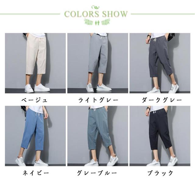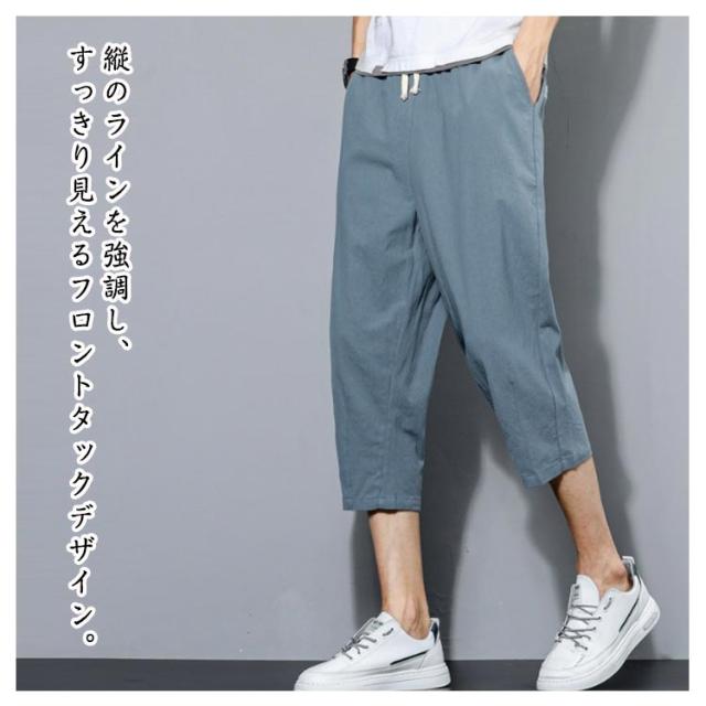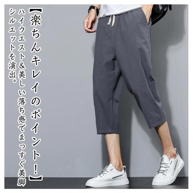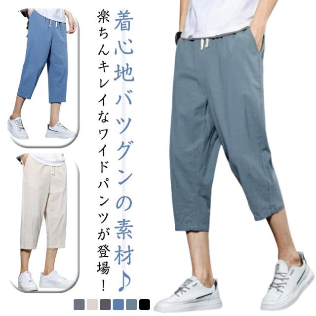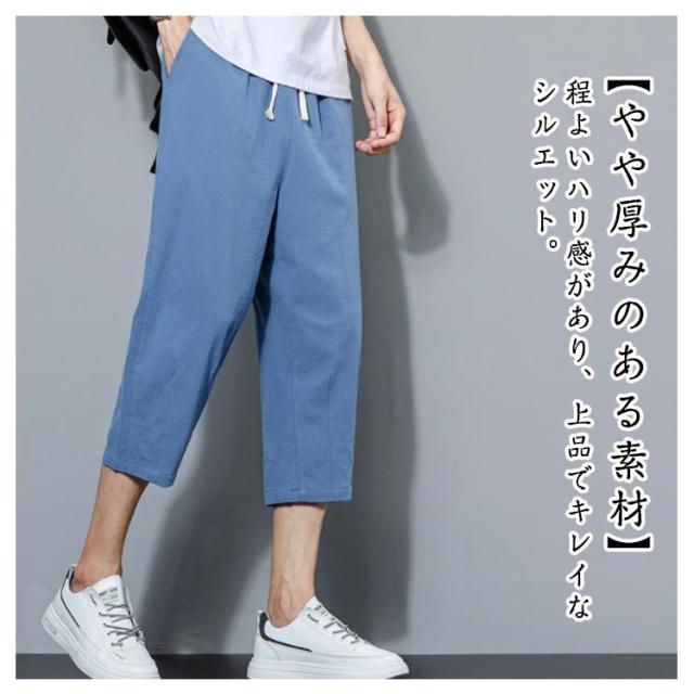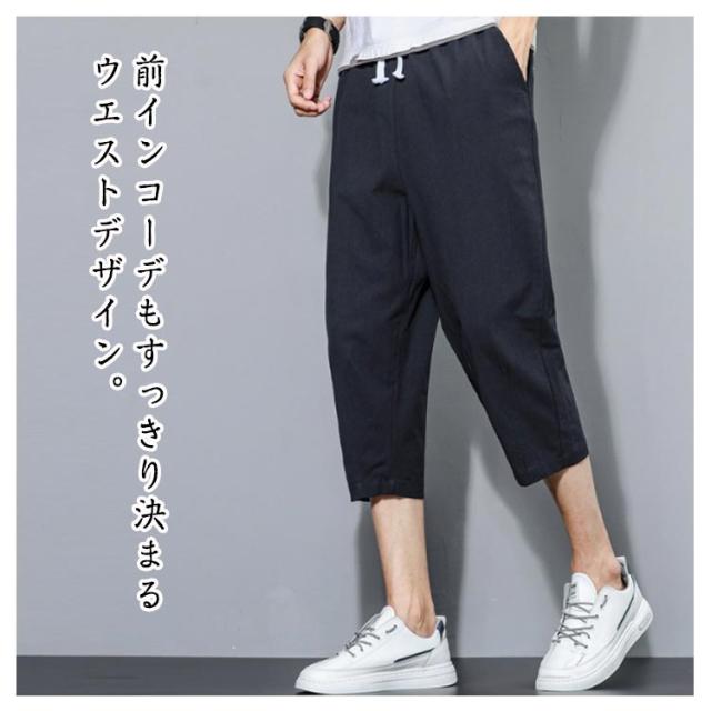 カジュアル ズボン サルエルパンツ ゆったり 綿麻調 メンズ サルエルパンツ 大きいサイズ おしゃれ ワイドパンツ 無地 通気 涼しい 七分丈 部屋着 スポーツ 調整紐 パンツ ボトムス ハーフパンツ メンズ 春 夏
