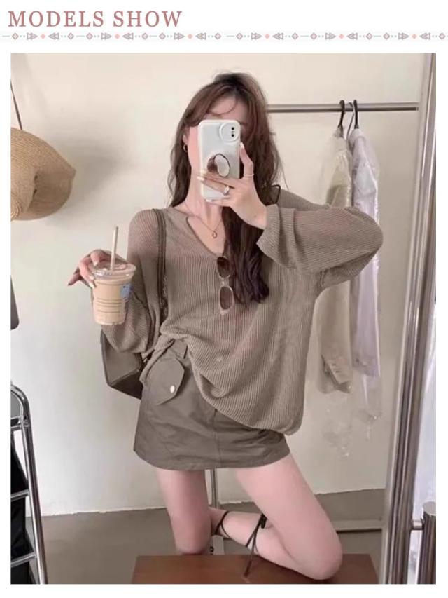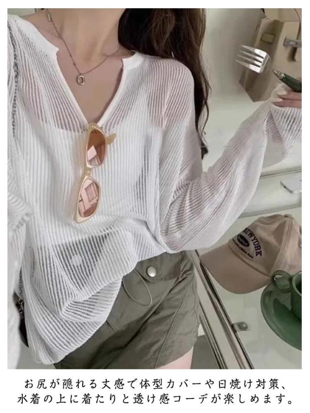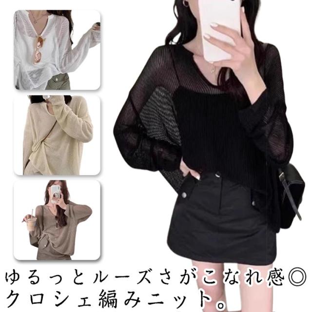 ニット 体型カバー ゆったり レディース 透かし 大きいサイズ クロシェ編み プルオーバー メッシュ 長袖 羽織り トップス 重ね着 透け感 ロング丈 華奢見え 薄手 大人可愛い 透かし編み Vネック 水着の上 春夏 春 夏