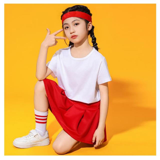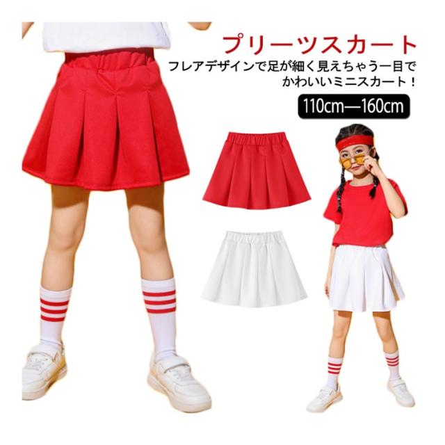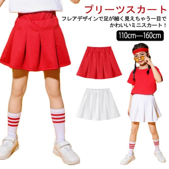 140cm プリーツスカート 無地 スカート ジュニア フレアスカート プリーツスカート キッズ 子供服 レッド ホワイト 110cm 女の子 130cm ストレッチ 150cm 160cm ダンス衣装 ヒップホップ チアリーダー 120cm チア チアガール ガールズ ジュニア 春 夏 秋