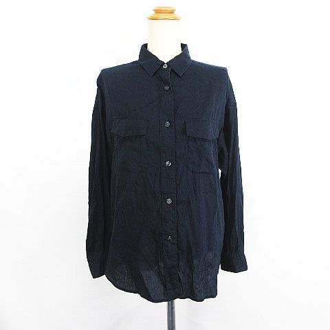 【中古】プラステ PLST シャツ 長袖 ドロップショルダー オーバーサイズ リネンミックス S ネイビー ※EKM レディース