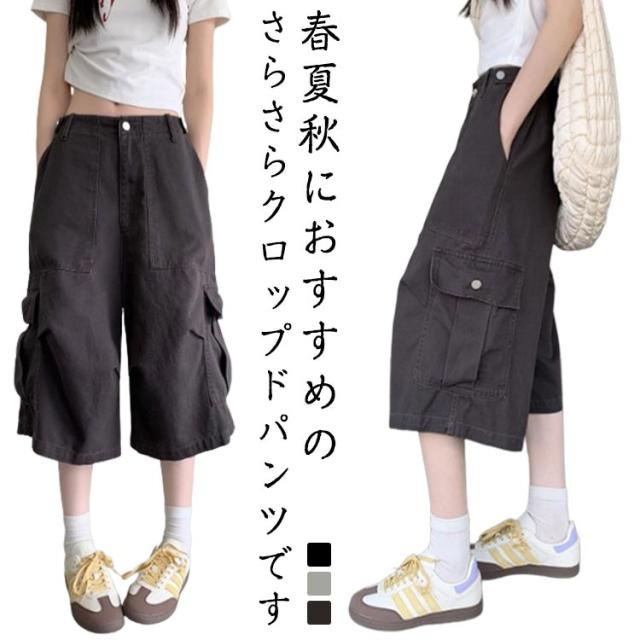 夏 スポーツ 春 薄手 軽い クロップド レディース ゆったり 7分丈 クロップドパンツ 夏 ワイドパンツ 7分丈 クロップドパンツ イージーパンツ 体型カバー サマーパンツ カーゴ ワイド裾 ウエストゴム 7分丈パンツ カーゴパンツ クロップド丈 着痩せ