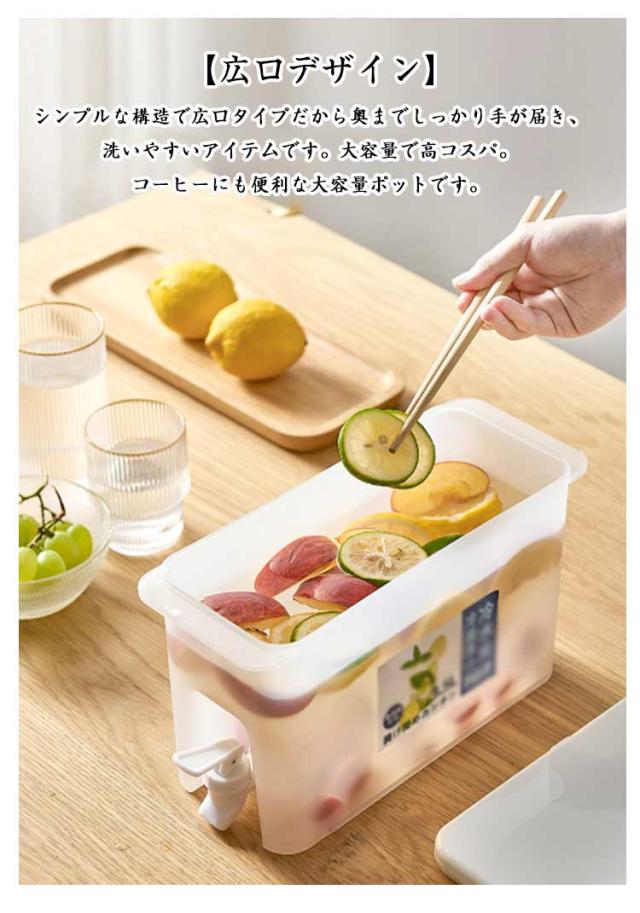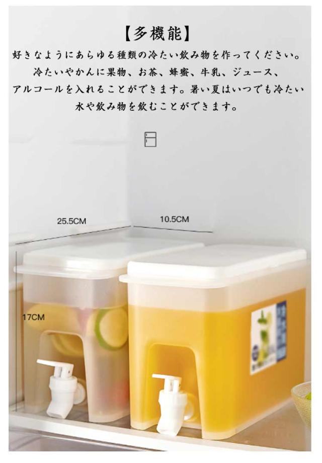 | 【3.5L大容量】【2個セット】 3.5Lは10本のコーラに相当し、家族や友人が集まる、たくさんの冷たい飲み物、大口径の蓋、開けやすく、氷を入れやすい、追加する必要がありますフルーツ、ダブルイヤーリフトデザイン、冷蔵庫に簡単に移動してテーブルの端に置くことができます 。 【蛇口付き】 口式コック付きウォータータンクの水量はコックによる調節可能で、水の出す量を制御しやすい、使いやすいです。また、シリコンリングで密閉されるので、 水漏れの心配も必要はありません。 【多機能】 好きなようにあらゆる種類の冷たい飲み物を作ってください。冷たいやかんに果物、お茶、蜂蜜、牛乳、ジュース、アルコールを入れることができます。暑い夏はいつでも冷たい水や飲み物を飲むことができます。 【優れた耐熱性】 食品グレードのPP素材で高温・低温に強く、-20℃〜100℃の温度差に耐えるケトルです。沸騰したお湯を変形せずに直接やかんに注ぐことができます。 【おしゃれ】 掃除が簡単で大容量、上部に蓋があり、新鮮さを保つために密閉され、蛇口が装備されており、便利で実用的です。残りの水量も一目瞭然、わかりやすいです。 【広口デザイン】 シンプルな構造で広口タイプだから奥までしっかり手が届き、洗いやすいアイテムです。大容量で高コスパ。コーヒーにも便利な大容量ポットです。 | |