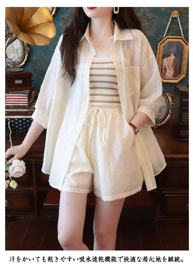 | 着るだけでこなれ感。大人の“服見え”ラッシュガードセット 今年の夏は、海やプールでも、 街でも映える“水陸両用”のセットアップが大人気! 【長袖シャツ+ショートパンツ】のラッシュガード2点セット。 ショートパンツは穿きやすいウエストゴム仕様。 汗をかいても乾きやすい吸水速乾機能で快適な着心地を継続。 縦横、四方に伸びる伸縮性にも優れ動きやすい。 シワになりにくく軽量なつくりだから持ち運びもしやすい まるで普通のシャツ&ショーパンのような服見えデザインで、 ビーチだけでなく街歩き・カフェ・旅行先でも違和感なく着こなせるアイテムです | |