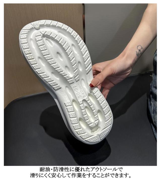| クッション性と耐油・防滑性に優れたコックシューズ! 足への負担を軽減してくれて疲れにくい!立ちっぱなしでも疲れにくいようサポートします。 耐油・防滑性に優れたアウトソールで滑りにくく安心して作業をすることができます。 つま先はゆったりとしていて快適な履き心地。長時間使用するなら軽量設計なのも嬉しいポイント! 一体成型なので、防水性もあります。丸洗いできるので、衛生的です。 雨の日のちょっとしたお買い物や家事、庭仕事はもちろん、 耐油性の靴底ですので、厨房用としてもお使いいただけます。 | |