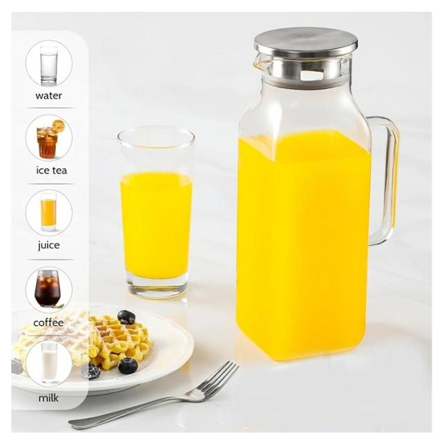 | ステンレス茶こし一体型蓋! ボトルの口径が大きく、手が直接差し込めて清潔できます 麦茶、紅茶、ジュース、コーヒー、ミルクなどの飲み物を淹れたい時にご気楽にお使えいただけます。 耐熱ガラスので、温かい飲み物にも冷たい飲み物にも使える耐熱ガラス製のピッチャーです。 | |