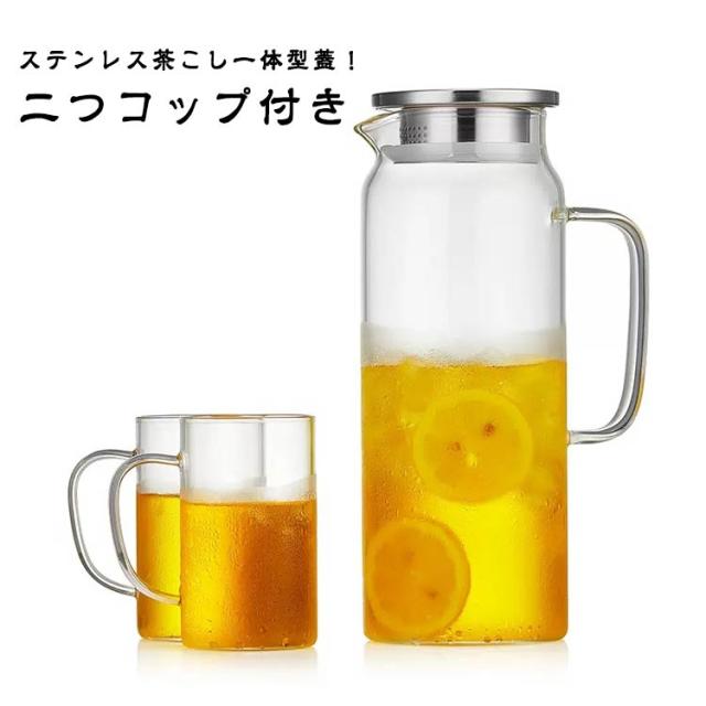 | ステンレス茶こし一体型蓋!二つコップ付き ボトルの口径が大きく、手が直接差し込めて清潔できます 麦茶、紅茶、ジュース、コーヒー、ミルクなどの飲み物を淹れたい時にご気楽にお使えいただけます。 耐熱ガラスので、温かい飲み物にも冷たい飲み物にも使える耐熱ガラス製のピッチャーです。 | |