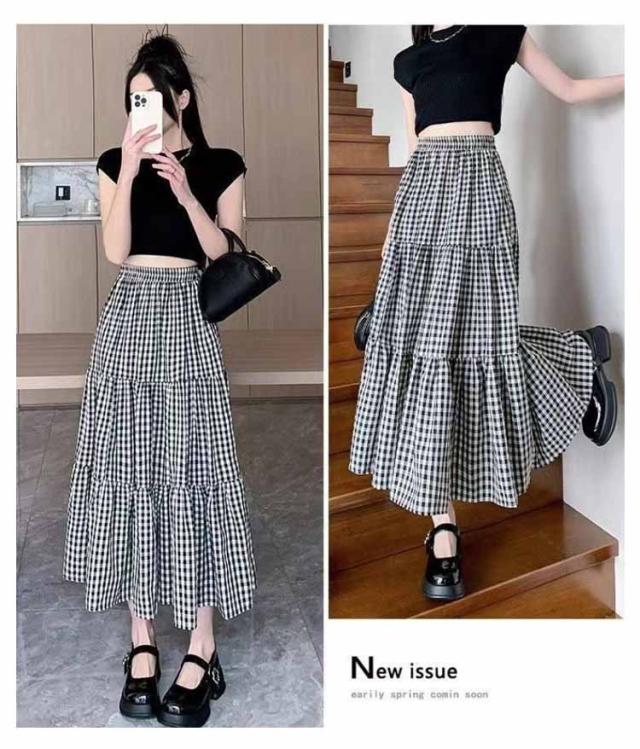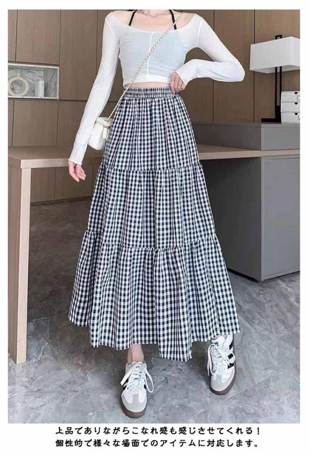 ロング丈 チェック柄 ウエストゴム レトロ レディース ギャザー ティアード ティアードスカート aライン フリル クラシック ハイウエスト 着?せ 夏 きれいめ おしゃれ ゆったり カジュアル 夏 ロングスカート 秋