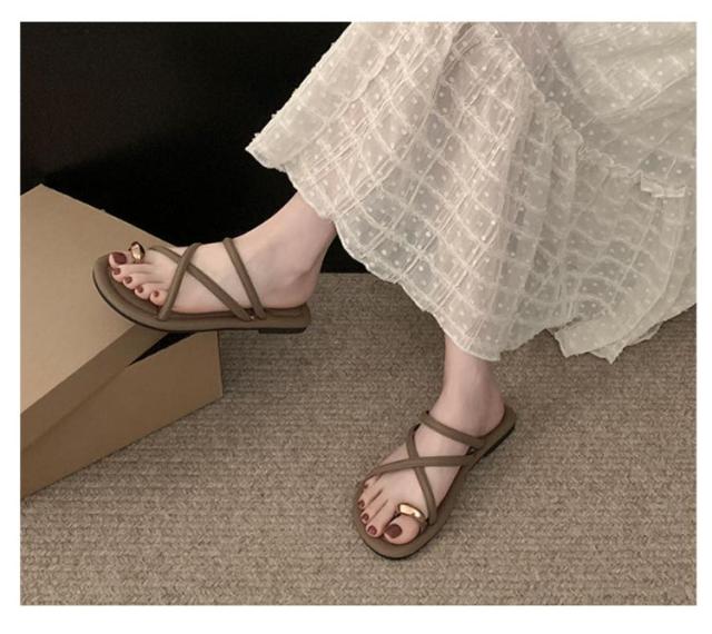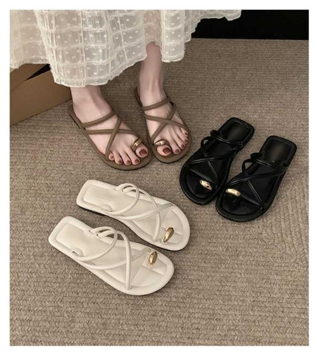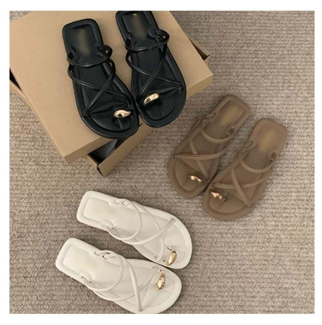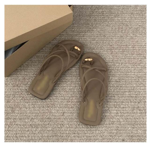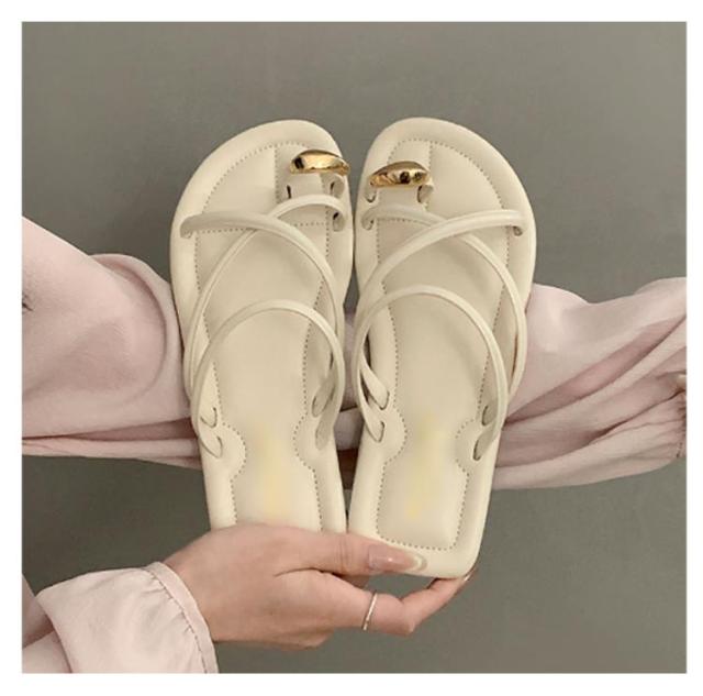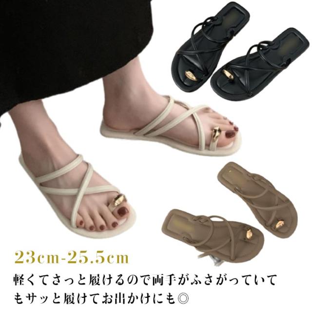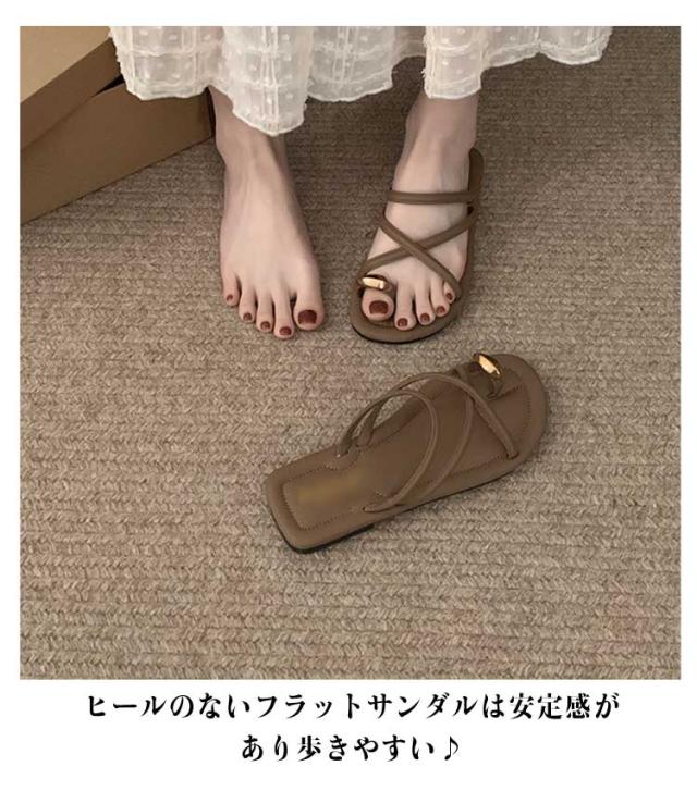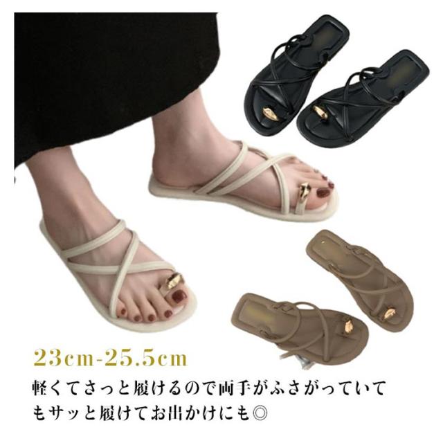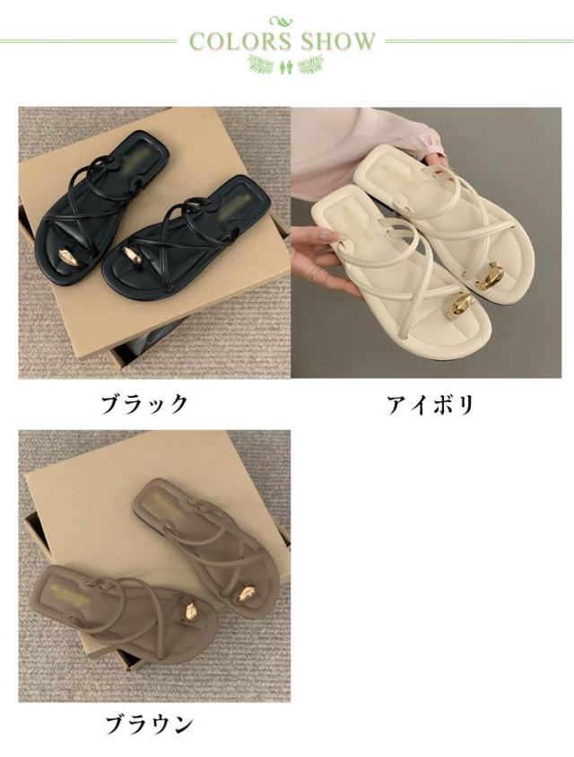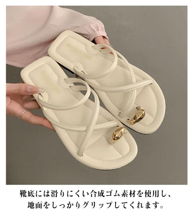 サムサンダル すべりにくい トングサンダル 痛くない ビーチサンダル リングサンダル つっかけ かかとなし レディース トングサンダル ぺたんこ ローヒール スクエアトゥ ゴールド 金具 親指トング