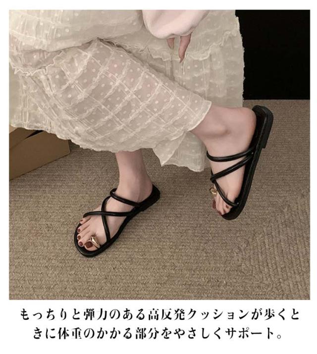 | 軽くてさっと履けるので両手がふさがっていてもサッと履けてお出かけにも◎ ヒールのないフラットサンダルは安定感があり歩きやすい♪ 靴底には滑りにくい合成ゴム素材を使用し、地面をしっかりグリップしてくれます。 もっちりと弾力のある高反発クッションが歩くときに体重のかかる部分をやさしくサポート。 | |
