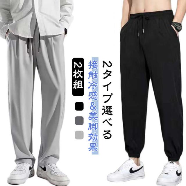 伸縮 レディース チノパン シェフパンツ メンズ アイスシルクパンツ 2枚組 接触冷感 接触冷感 夏 ストレッチ ゴルフ ワイドパンツ バルーンパンツ ルーズ ゆったり 黒 ゴルフ スポーツウェア カジュアルパンツ ロングパンツ