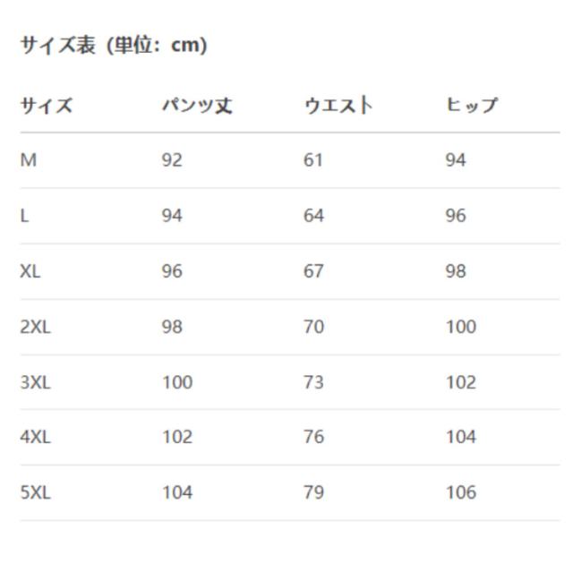 | サイズ | M L XL 2XL 3XL 4XL 5XL |