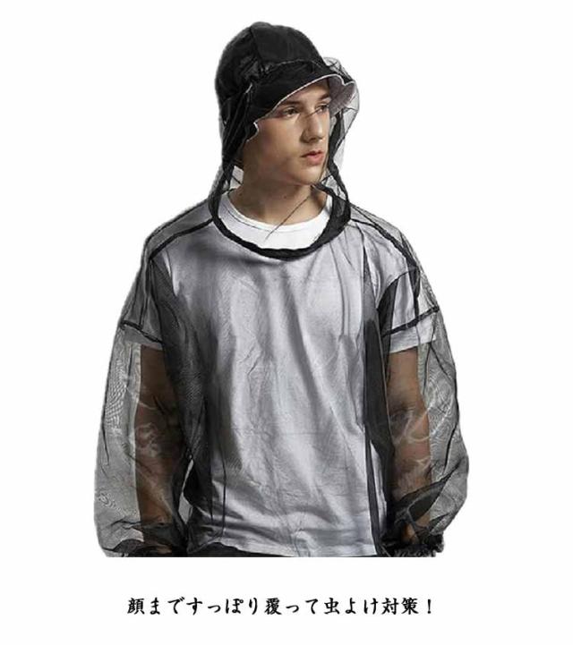 帽子を被ったまま パーカー 虫除けウェア 虫除けネット付き メッシュパーカー 【3点セット】顔まですっぽり 園芸 【3点セット】顔まですっぽり 蚊よけ 虫よけ 虫除け 男女兼用 アウトドア 農作業 蚊除け 庭仕事 畑仕事 ガーデニング 防虫 ロング丈 ブラック 黒 通気性