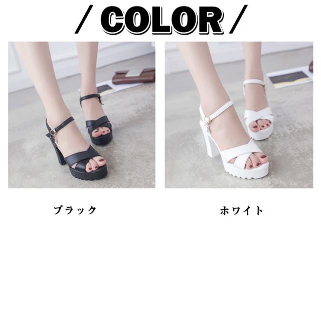 送料無料 太ヒール 送料無料 サンダル アンクルストラップ 厚底サンダル ストラップサンダル チャンキーヒール ストラップ 美脚 レディース 厚底 サンダル オープントゥ 夏 大きいサイズ 小さいサイズ 歩きやすい おしゃれ ブラック ホワイト 黒