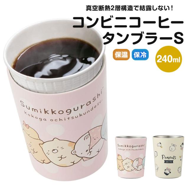 \今だけ10%OFF/ コンビニコーヒータンブラー S 240ml ホットコーヒー アイスコーヒー 保温 保冷 結露しない 真空断熱 サーモタンブラー カップ コップ デスクワーク オフィス すみっコぐらし スヌーピー STCV1