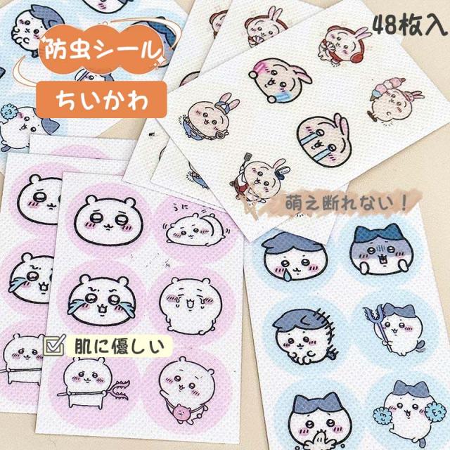 ちいかわ 48枚入り 防虫シール 虫よけシール 貼るだけ 夏用 防虫 防ダニ かわいいデザイン お出かけ用 登山 キャンプ