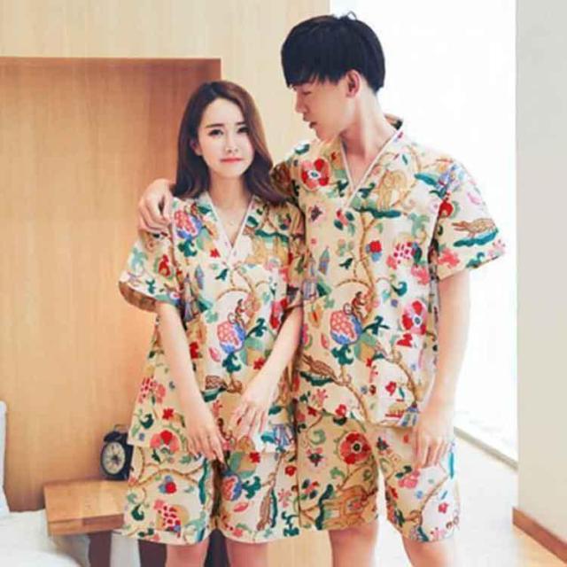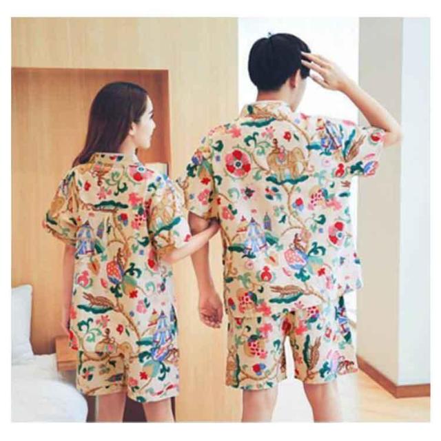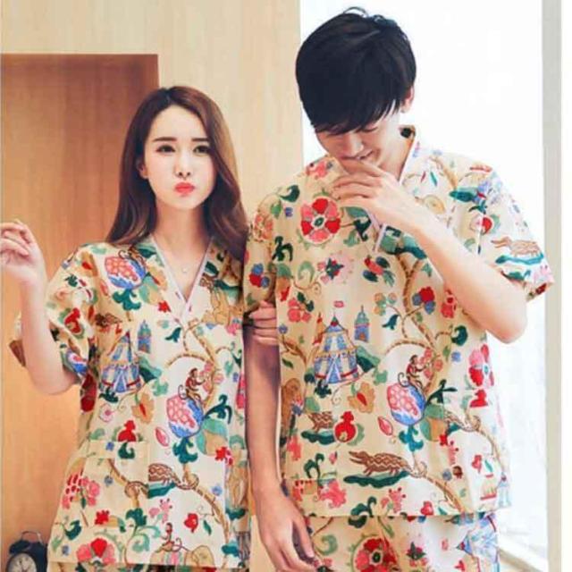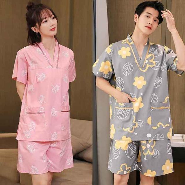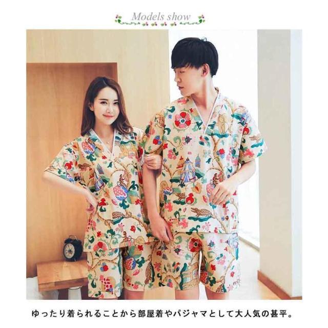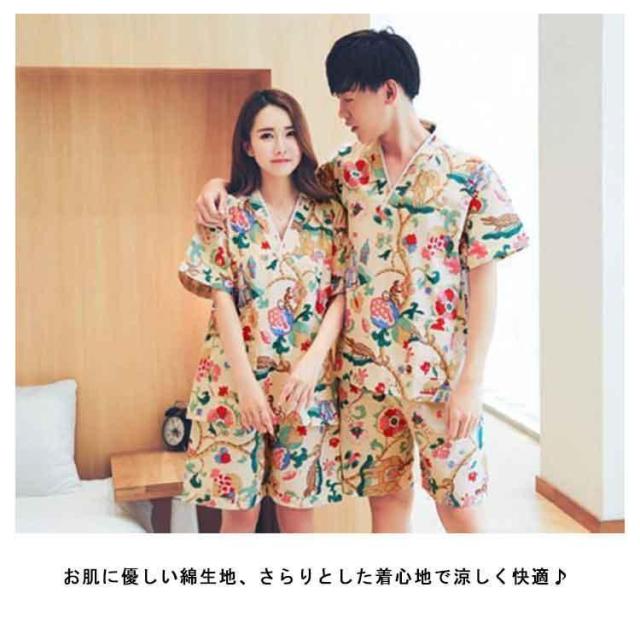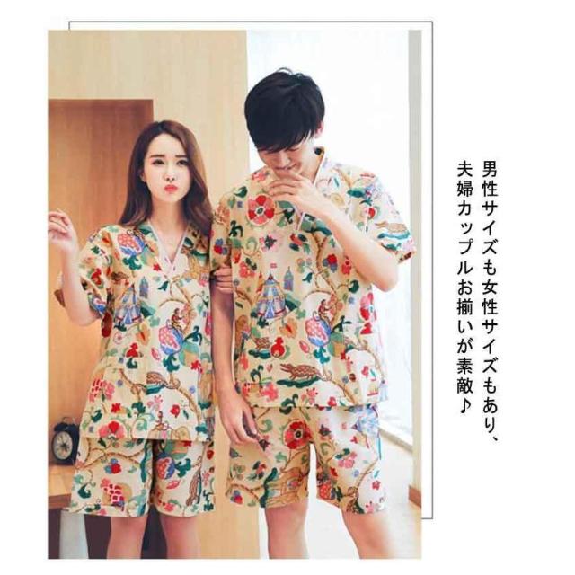 夫婦カップル 甚平 浴衣 レディース メンズ 上下セット セットアップ 半袖 綿 コットン 涼しい 夏 部屋着 ルームウェア パジャマ 寝間着 かぶり