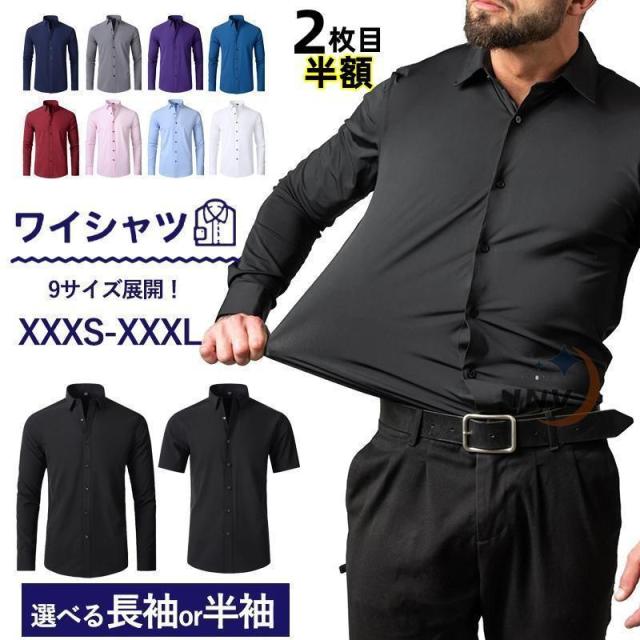 ワイシャツ ビジネスシャツ メンズ 長袖 半袖 無地 おしゃれ 長袖ワイシャツ 半袖ワイシャツ 形態安定 スリム ストレッチ カジュアル 通勤 通学 安い