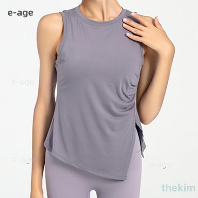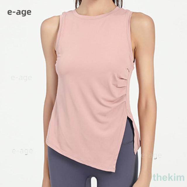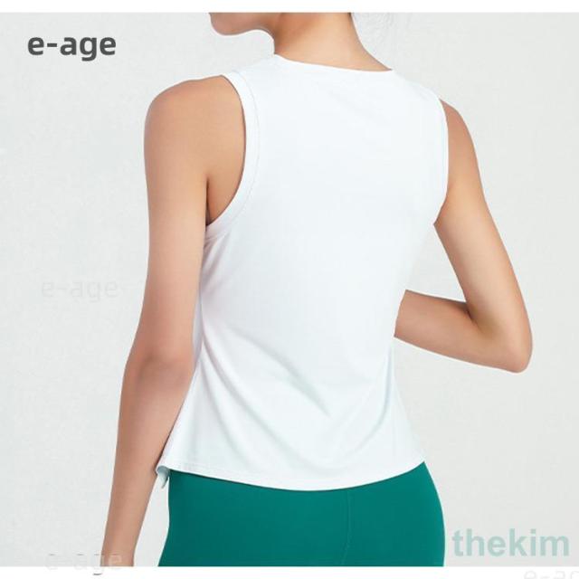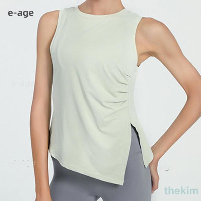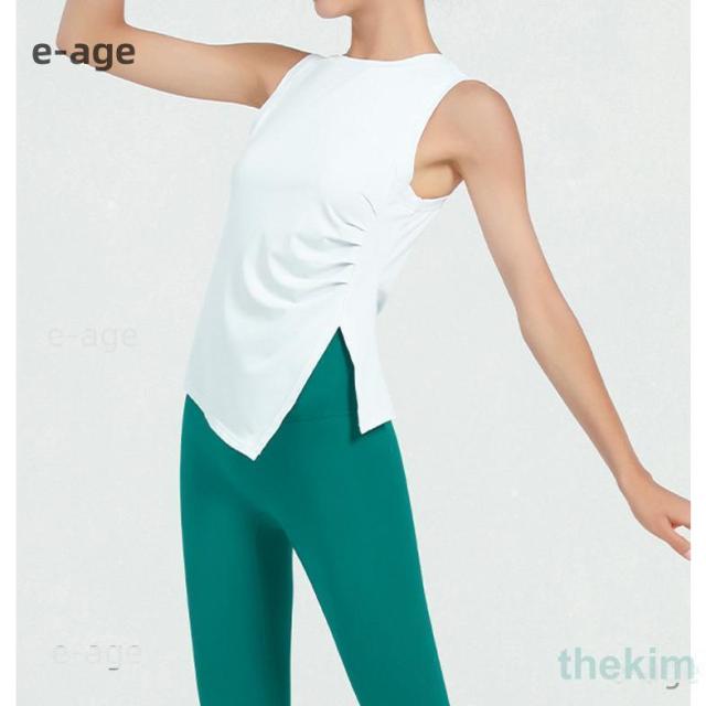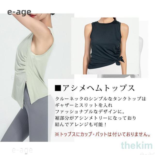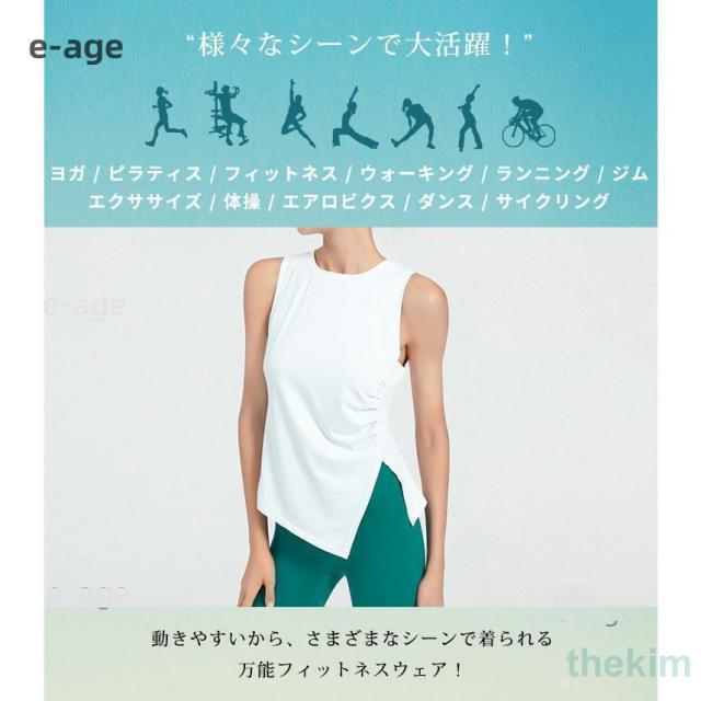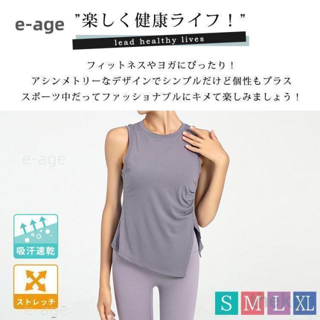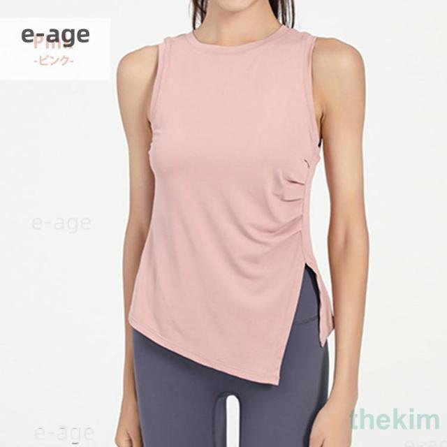 夏 レディース ヨガウェア タンクトップ トップス アシメヘム アシンメトリー ノースリーブ サイドスリット 白 黒