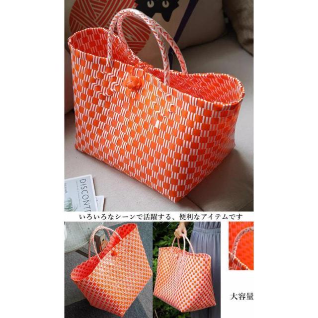 かごバッグ カゴバッグ 籠バッグ おしゃれ 高見え ビニールバッグ PP 耐水 トート 買い物かご レジャーバッグ バスケット 手提げ お買い物バッグ 可愛い 収納