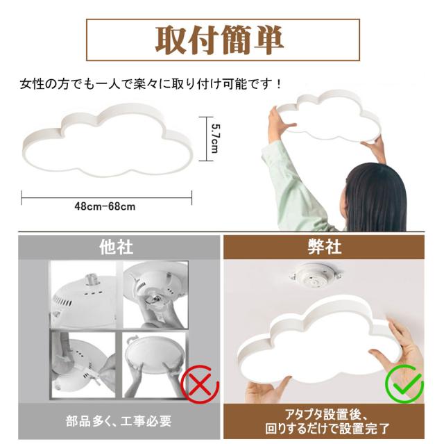 【6年保証】LED シーリングライト 6畳 8畳 10畳 12畳 調光調色 リモコン付き おしゃれ 子供部屋 常夜灯 引掛け対応 工事不要 照明器具 雲 シンプル 可愛い 室内照明 クラシック 幼稚園 保育園 学校 子供用 寝室 リビング ダイニング ベッドルーム 一人暮らし 明るい