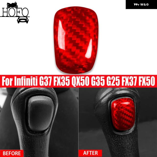 カーボン インテリア ギア シフト ノブ ボタン カバー インフィニティG37 FX35 QX50 G35 G25 FX37 FX50