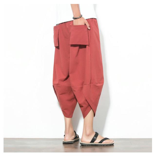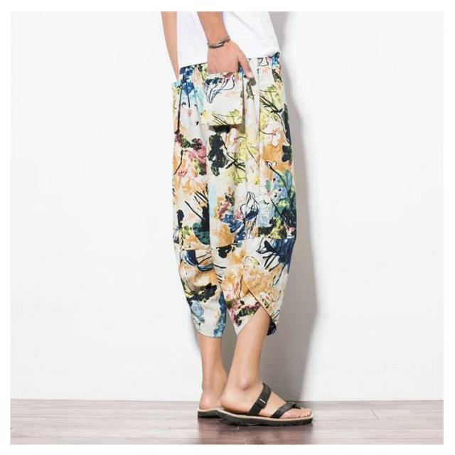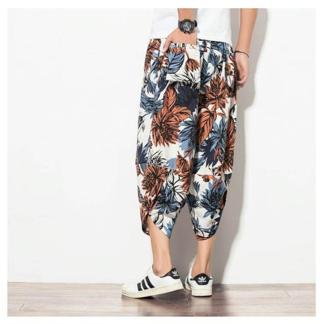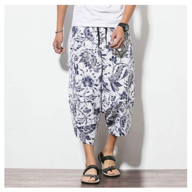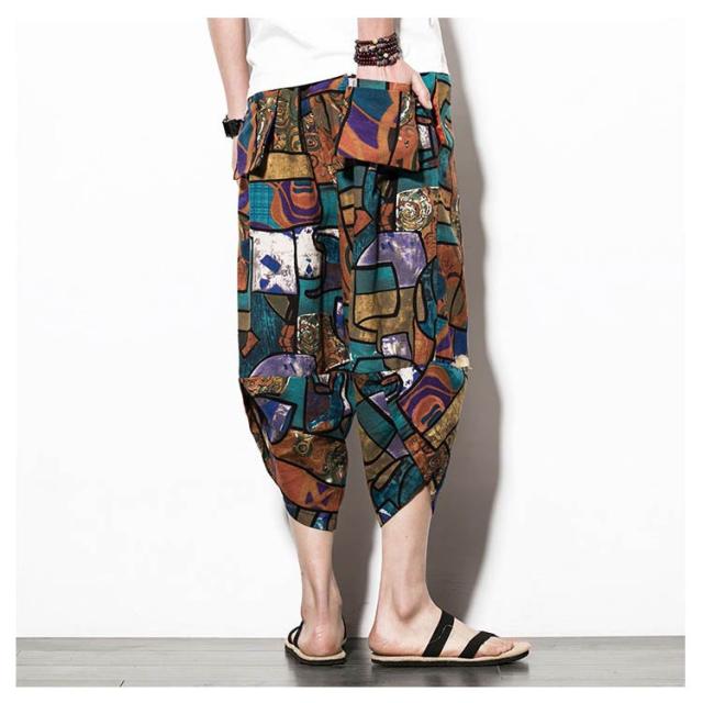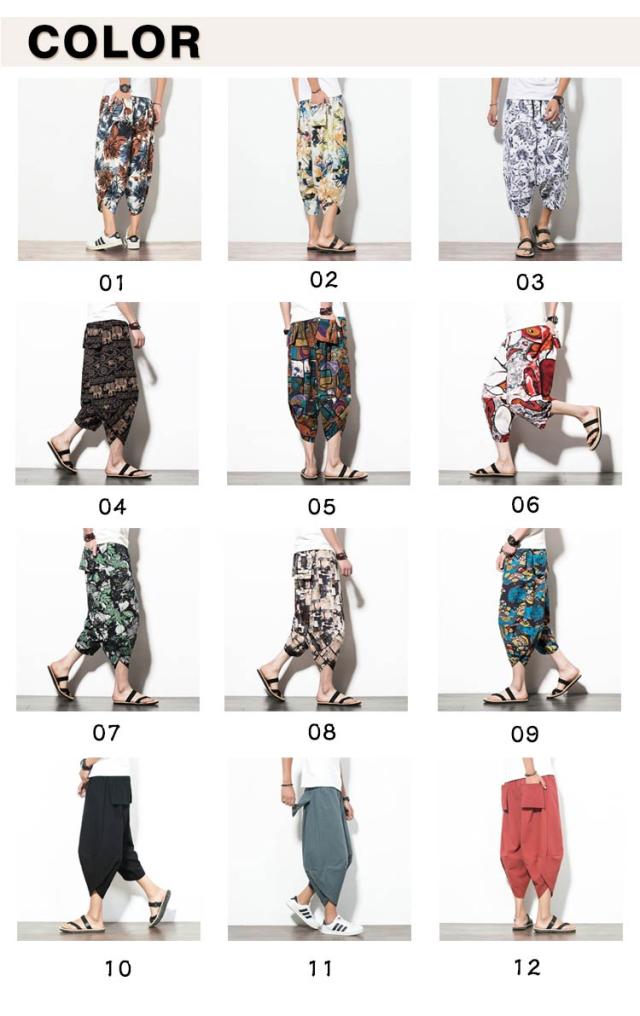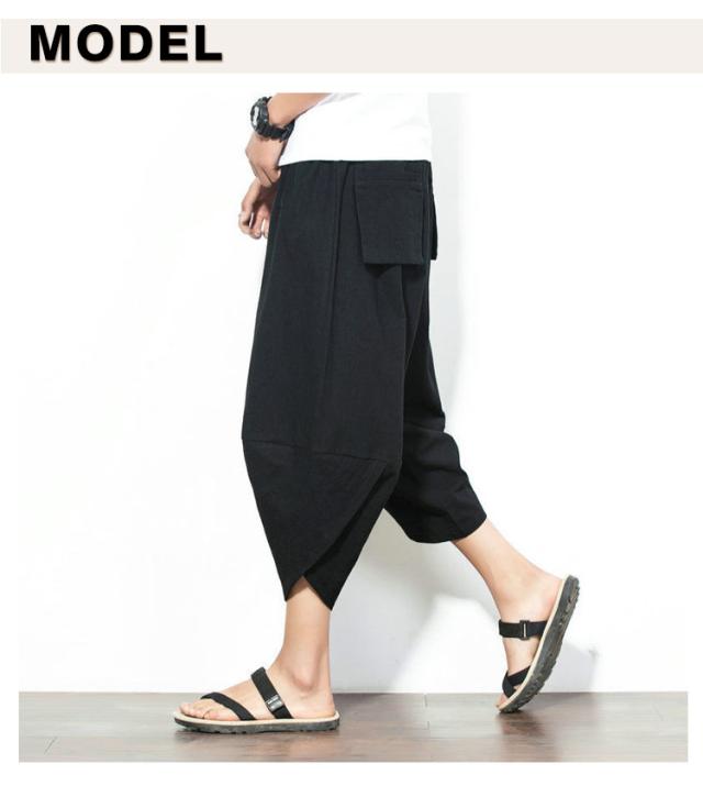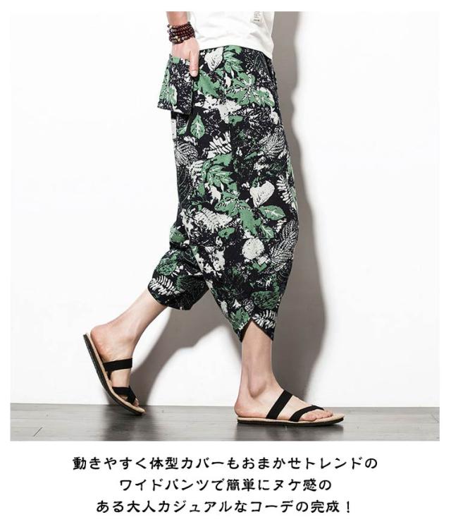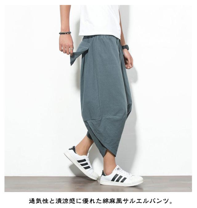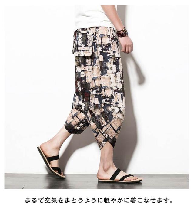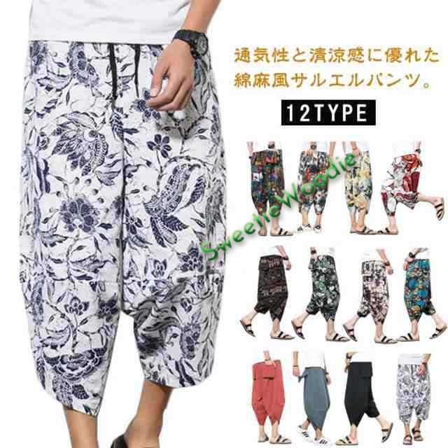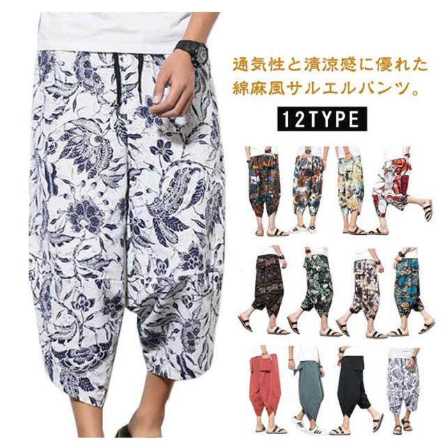 メンズ サルエルパンツ 綿麻 七分丈 サルエル パンツ ワイドパンツ クロップドパンツ 冷感 ゆったり サムエルパンツ 7分丈 ズボン 春夏 花柄 ゾウ 象柄 無地 袴パンツ カジュアル おしゃれ 大きいサイズ ルームウェア リラックスパンツ ルームウェア