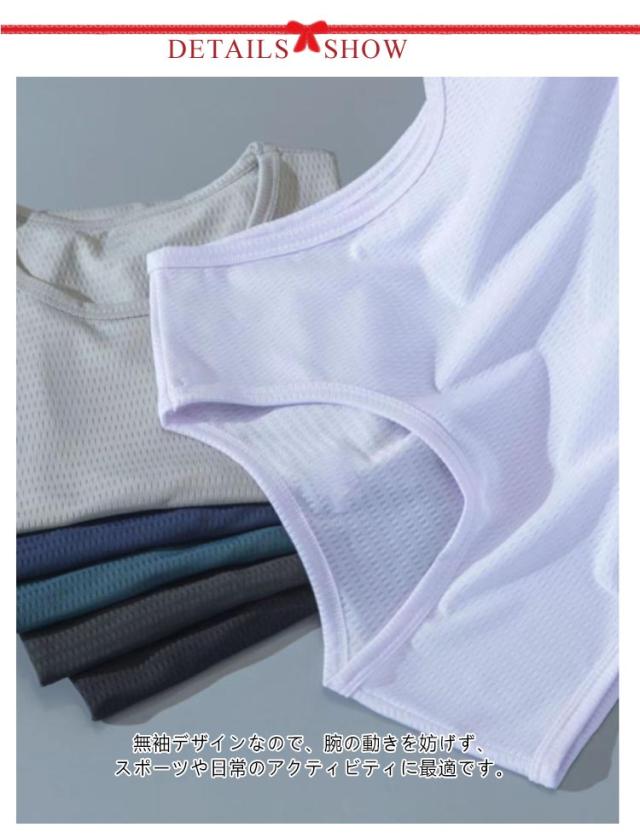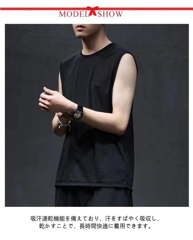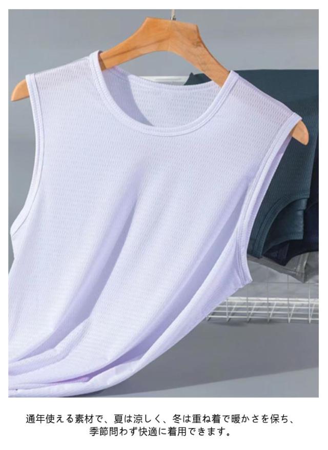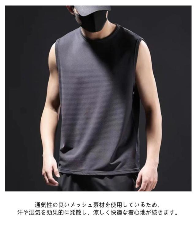 タンクトップ 吸汗速乾 メンズ メッシュ オールシーズン インナー アンダーシャツ インナーシャツ ノースリーブ tシャツ 通気性 ドライ カットソー クルーネック ジム 筋トレ トレーニング スポーツ 重ね着 大きいサイズ トレーニングウェア おしゃれ 運動着 男性 下着