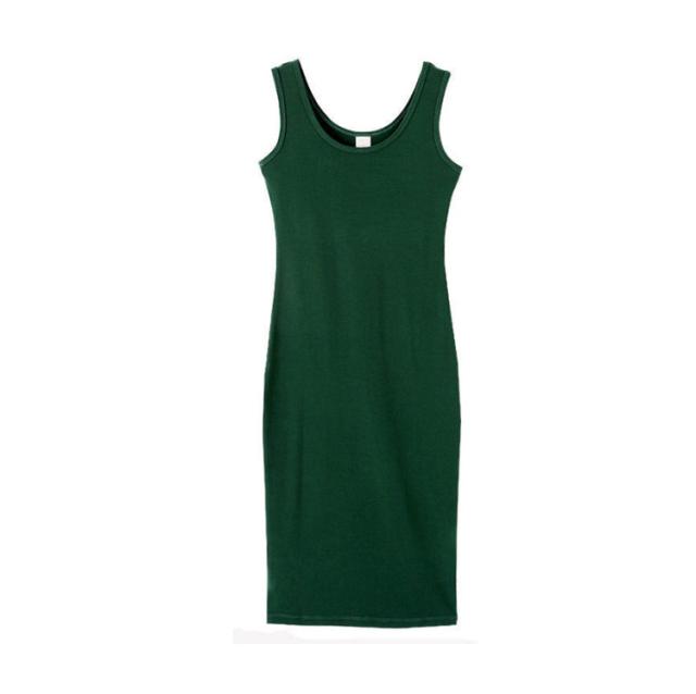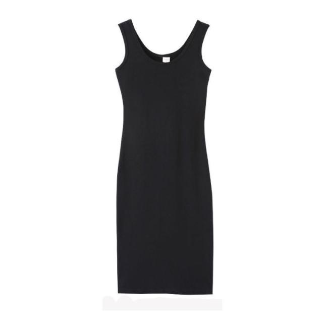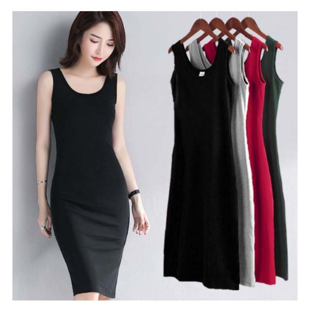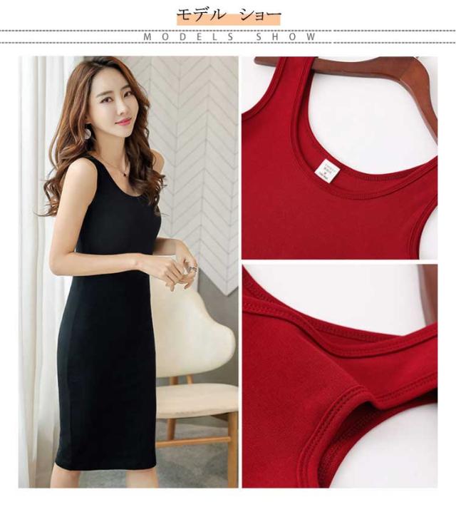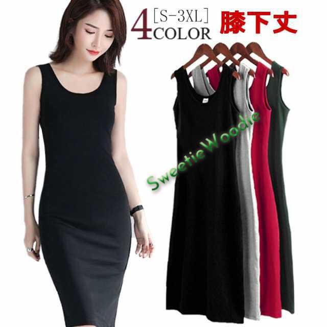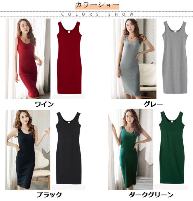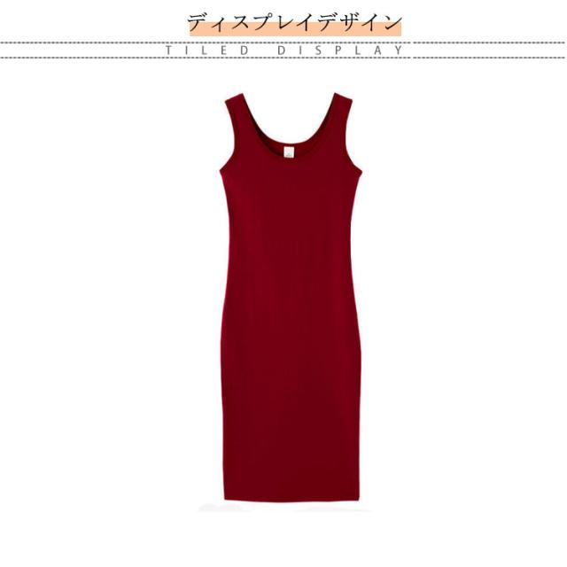 タンクトップワンピース ひざ下丈 膝下 タイト ノースリーブ レディース 無地 シンプル Uネック ワンピース きれいめ 細身 おしゃれ インナーワンピース 夏 ボディコン クルーネック 大きいサイズ ミディアム丈 伸縮性