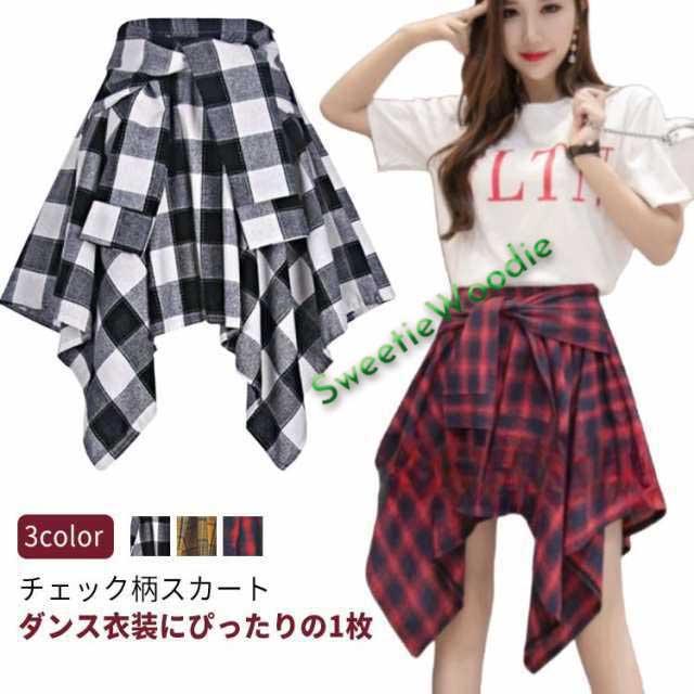 スカート 巻きスカート 風 チェック ミニスカート シャツ腰巻き風スカート リボン ダンス ダンススカート スカート ボトムス ミニ チェック柄 スカート レディース チェックシャツ 前短め 普段着 お出掛け チア チアリーダー 衣装 デート 可愛い イベント 春夏秋冬