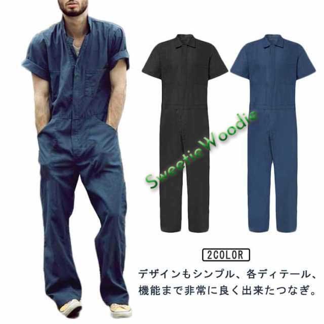 つなぎ 作業服 半袖 メンズ ツナギ オールインワン 春夏 大きいサイズ ゆったり ワイド 夏用 キャンプ アウトドア 動きやすい ストリート カジュアル レジャー 無地 薄手 30代 40代 50代 送料無料