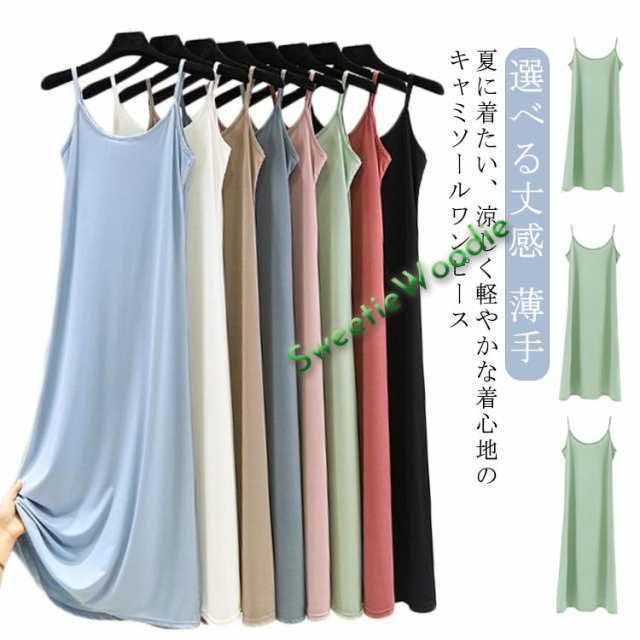 選べる着丈 ペチコート キャミワンピース ノースリーブ キャミソール ワンピース シンプル 夏 薄手 涼しい レディース インナーワンピース ロング丈 ミディアム丈 ロング丈 ショートワンピース 可愛い 無地 カジュアル 送料無料