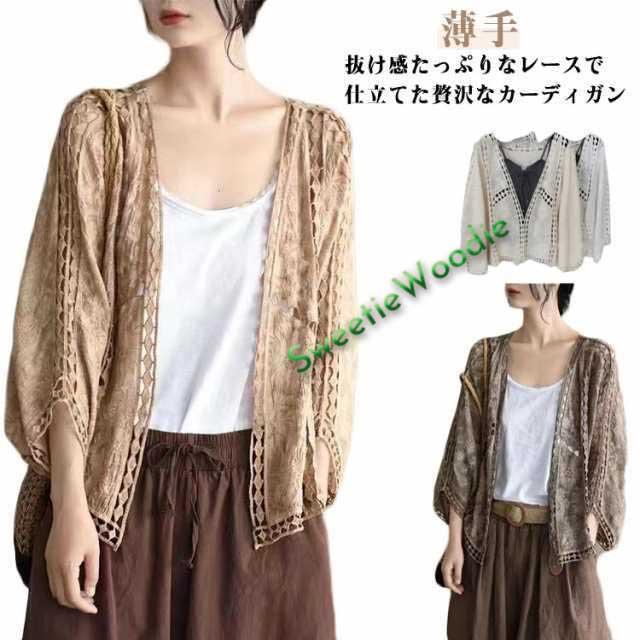 重ね着 カーディガン ショート丈 ボレロ 可愛い サマーカーディガン 総レース 透かし編み フリーサイズ 長袖 羽織り ゆったり 上着 コーデ ナチュラル ドロップショルダー ドルマン 薄手 体型カバー 可愛い サマーカーディガン トップス ボリューム袖