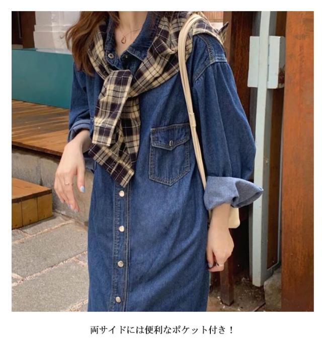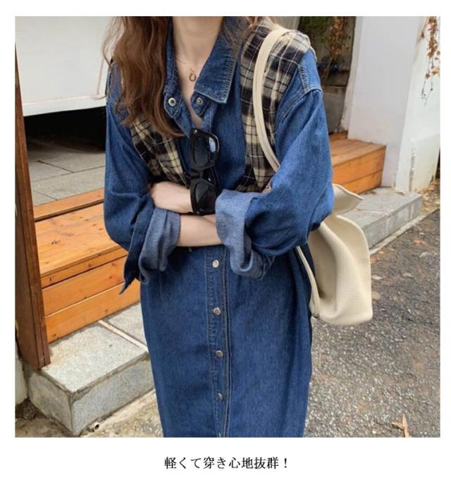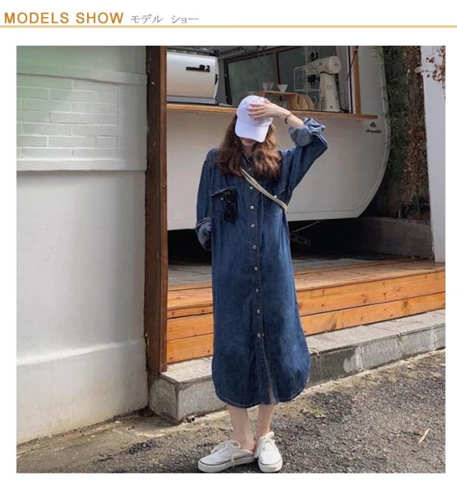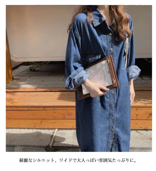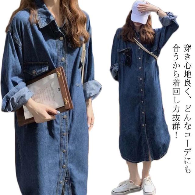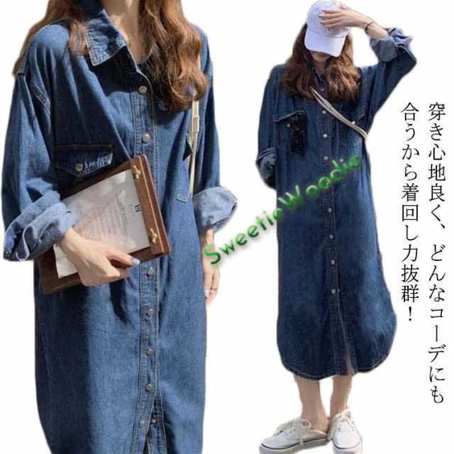 デニム 長袖 デニムワンピース ロングシャツ 日常デート シャツワンピース デニム ロング お出かけ ロングワンピース レディース マキシ丈 春 きれいめ カーディガン コート 2way 着痩せ マキシワンピース 体型カバー 普段着 通勤 シャツワンピ