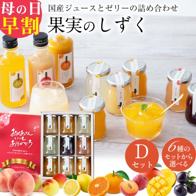 母の日 果実のしずく Dセット Elegance エレガンス 国産 ジュース と ゼリー の詰め合わせ みずみずしい果実の恵みをゼリーとジュースにとじ込めました。みかん 桃 白桃 梅 南高梅 マンゴー レモン すもも アサイー ギフト プレゼント 手土産