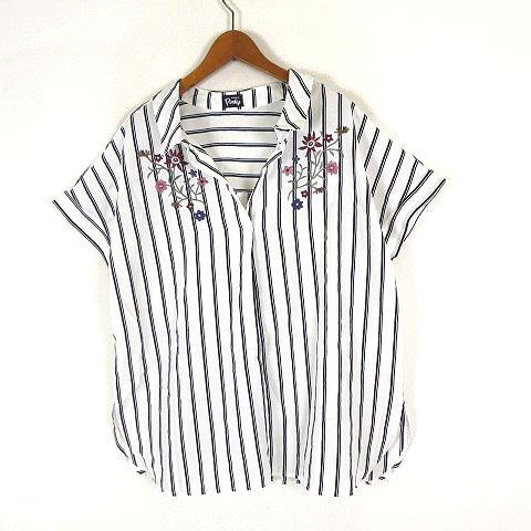 【中古】アズノウアズ ピンキー AS KNOW AS PINKY ブラウス シャツ 花柄 刺繍 ストライプ スキッパー半袖 F オフ白 紺