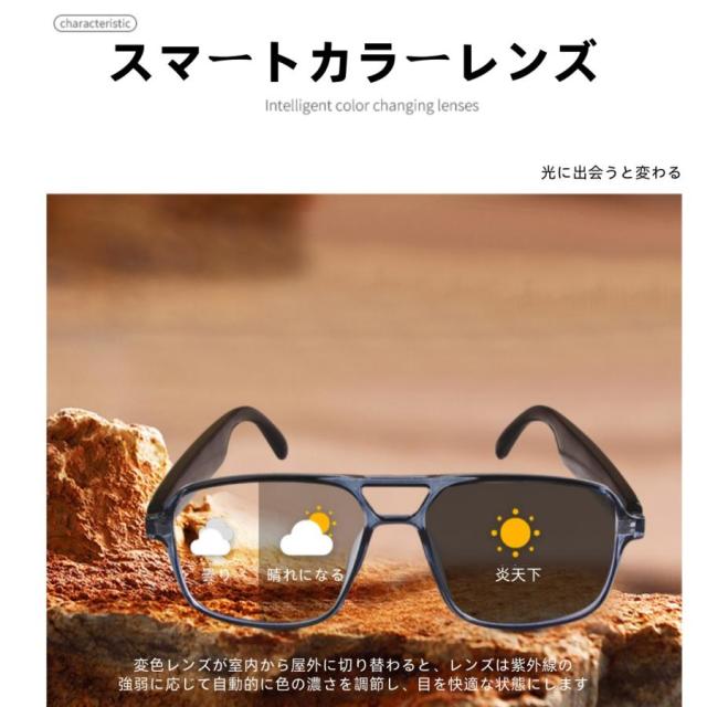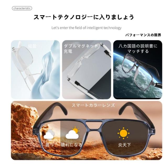 スマートグラス メガネ ワイヤレスメガネ スマート眼鏡 通知可能 音楽再生 遠隔カメラ スマートメガネ サングラス ワイヤレスイヤホン スポーツメガネ ブルート